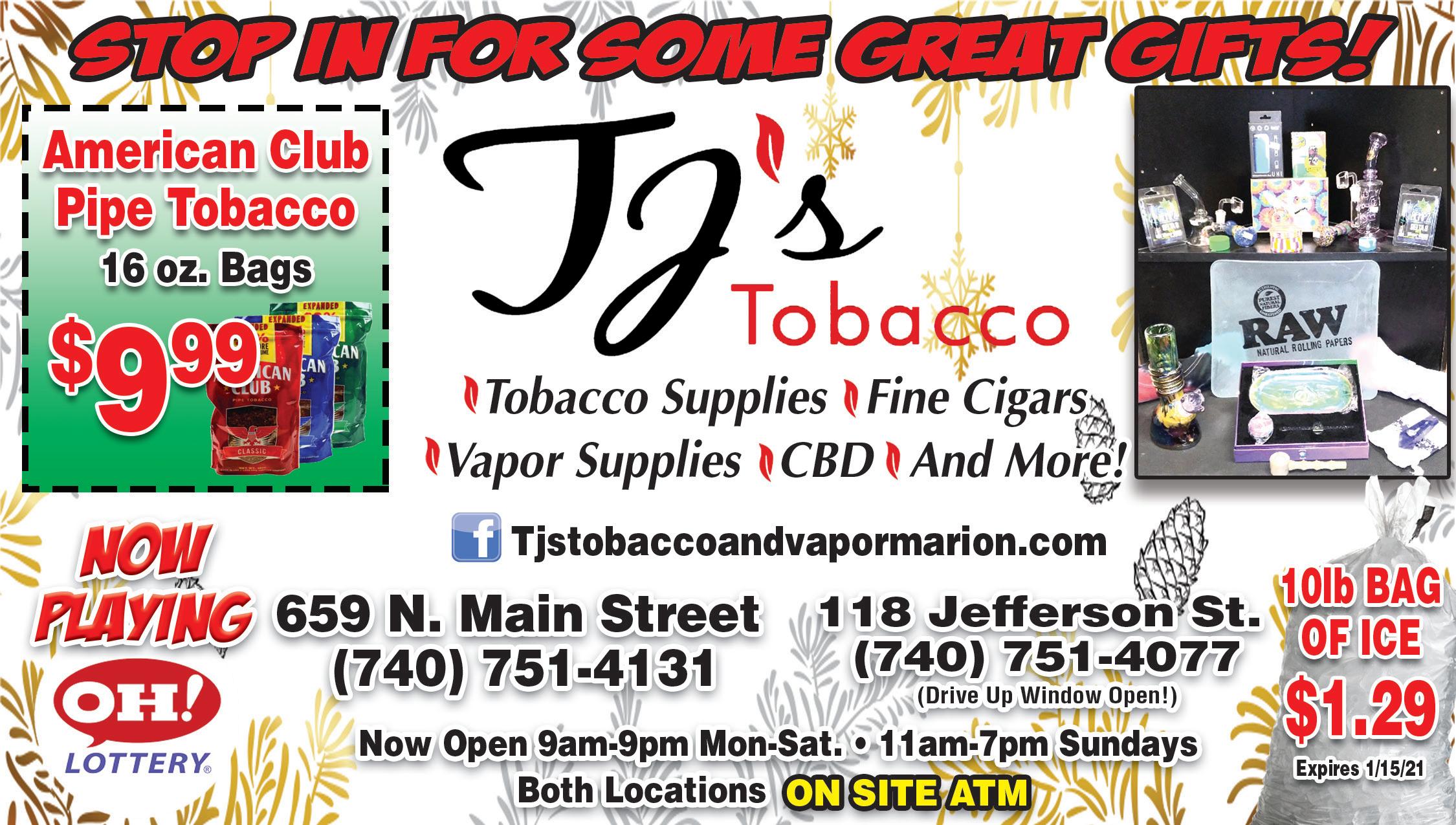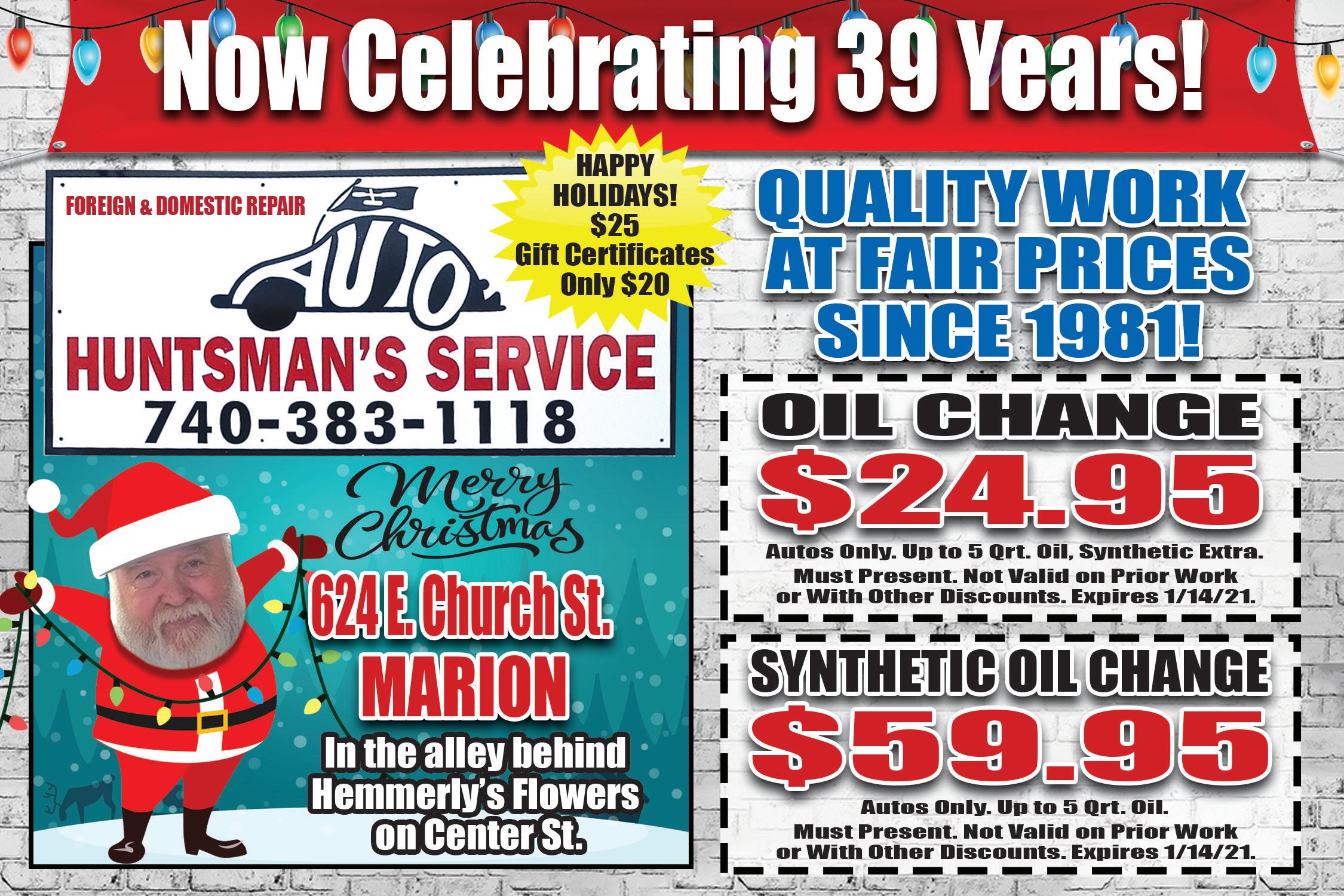 Great Gifts! Full Auto/Truck Repairs New & Used Tires Custom Work 24 Hour Affordable Towing Storage Lots 939 Pole Lane Rd • 740-914-4648 Tune-Ups Starting at $65 + TAX 100% Workmanship Guaranteed Home of the $49.99 + TAX Brake Job! Expires 1/14/21