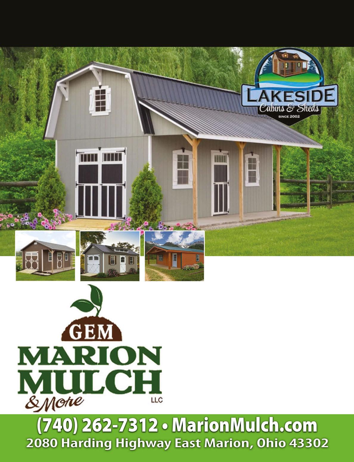 NOW AVAILABLE LOCALLY FROM MARION MULCH & MORE! Visit Our Displayed Models at Marion Mulch & More or Custom Build Your Own from the Comfort of your Own Home by Going Online and Using Our 3-D Builder at www.mylakesidecabins.com