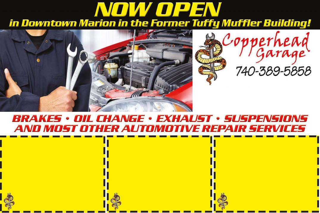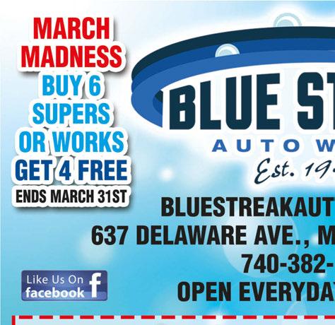 698 RICHMOND AVE. MARION, OH • 740-387-4992 NOW OPEN DAILY FOR LUNCH AT 11AM! Sun & Mon: 11am-9:30pm • Tues-Thur: 11am-10:30pm Fri & Sat: 11am-11:30pm NEW OWNERS, SAME GREAT FOOD! EVERY ORDER RECEIVES A RAFFLE TICKET! drawing MARCH 31st! 1st Place prize $50 mastercard gift card • 2nd place prize: $25 mastercard gift card 3rd place prize: $25 genova’s gift certificate $5 DAILY SPECIALS MON: 1/2 Pound of Wings TUES: Any 9” Sub WED: Pizza Roll THUR: Small Nacho FRI: Burger & Chips with a 12oz Soda SAT: Any Salad SUN: Spaghetti FREE WITH ANY ORDER OVER $20 2 LITER WITH COUPON. EXPIRES 4/15/21 IF YOU LIVE WITHIN 15 MINUTES OF GENOVA’S, WE DELIVER TO YOU! 10” CAULIFLOWER CRUST NOW AVAILABLE! 157 South State Street Marion, Ohio 43302 Mon-Fri 8am-5pm Appointments Preferred • Walk-Ins Always Welcome FREE Battery Installation With Purchase of an Interstate Battery Certain conditions apply. Not valid with any other offers. Must present at time of service. Expires 4/15/21 FREE Multi-Point Vehicle Inspection Complete Vehicle Diagnostic ONLY $24.95 + Receive 10% OFF Repair Labor Certain conditions apply. Not valid with any other offers. Must present at time of service. Expires 4/15/21 Certain conditions apply. Not valid with any other offers. Must present at time of service. Expires 4/15/21