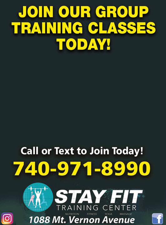 ADULT GROUP TRAINING AVAILABLE ALL DAY MON-FRI ATHLETE TRAINING MON, WED & FRI 2PM 3 SLOTS AVAILABLE! YOUTH SPEED AGILITY QUICKNESS TRANING 8-12 YRS MON & THURS 3PM 4 SLOTS AVAILABLE! NO CONTRACTS! ACCESS 24/7! $20 OFF BRING IN THIS AD TO GET YOUR INITIAL PAYMENT. Contact store location for complete details. LOW WEEKLY / MONTHLY PAYMENTS • 6 MONTHS SAME AS CASH • NO CREDIT NEEDED 1379 Harding Way E. Call Today 740. 309.TIRE (8473) WE ARE STILL OPEN TO SERVE YOU !