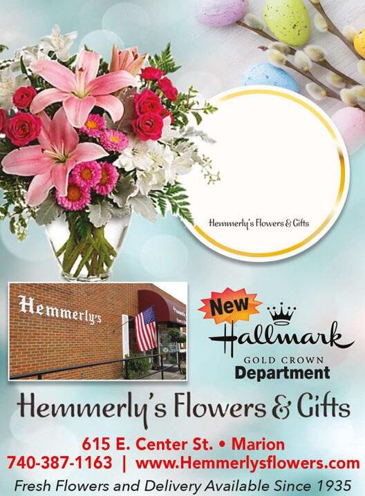 1360 Mt. Vernon Ave. 740-389-1249 Behind Red Lobster in the Marion Plaza $1 OFF Any two lunches ONE COUPON PER TABLE. PRESENT COUPON. NOT VALID WITH OTHER OFFERS OR SPECIALS. EXPIRES 4/15/21. TMS DINE IN OR CARRY OUT ONE COUPON PER TABLE. PRESENT COUPON. NOT VALID WITH OTHER OFFERS OR SPECIALS. EXPIRES 4/15/21. TMS $2 OFF Any Purchase of $15 or more $3 OFF Any Purchase of $25 or more DINE IN OR CARRY OUT ONE COUPON PER TABLE. PRESENT COUPON. NOT VALID WITH OTHER OFFERS OR SPECIALS. EXPIRES 4/15/21. TMS YOUR TOTAL PURCHASE MUST PRESENT. EXPIRES 4/15/21 REWARDS EARNSPROGRAM! $10 IN FREE MERCHANDISE WITH EVERY $100 SPENT! CHECK OUT OUR EASTER SELECTION!