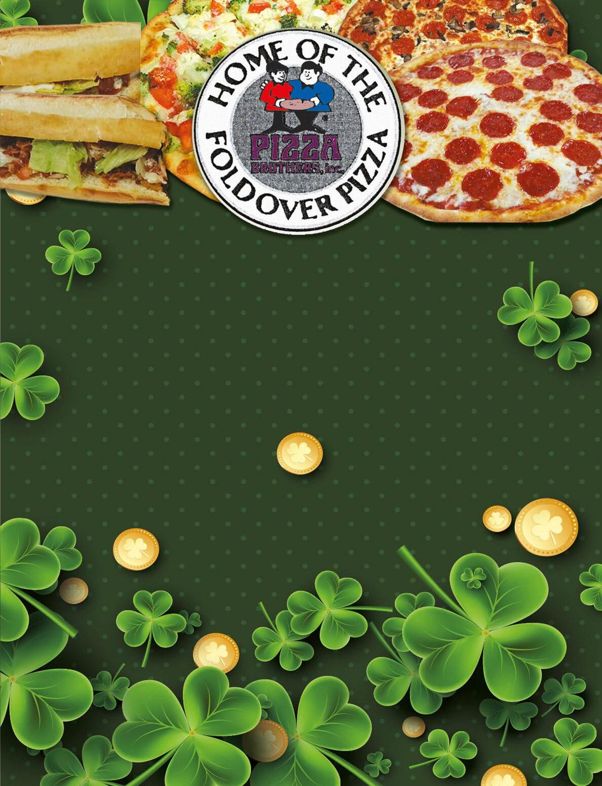 Hours: Monday-Thursday: 10:30am-1:30pm, 4:00pm-10:00pm Friday & Saturday: 11:00am-11:00pm • Sunday: 4:00pm-10:00pm PIZZA BROTHERS 617 DELAWARE AVE. 387-2121 CARRYOUT OR DELIVERY 387-2121 617 Delaware Ave. Not valid with any other offer. PICK UP OR DELIVERY. Expires 4/15/21 Foldover Family Pack 17” Foldover, Large Chef Salad, Breadsticks & 2-Liter of 7UP Not valid with any other offer. PICK UP OR DELIVERY. Expires 4/15/21 387-2121 617 Delaware Ave. 17” 3 Topping Pizza $15.50 CODE # T0301 $28.50 (Premium Foldovers Available for Additional Charge) 17” 1 Topping Pizza & 2-Liter of 7UP $15 CODE # T0303 Not valid with any other offer. PICK UP OR DELIVERY. Expires 4/15/21 Not valid with any other offer. PICK UP OR DELIVERY. Expires 4/15/21 Not valid with any other offer. PICK UP OR DELIVERY. Expires 4/15/21 Not valid with any other offer. PICK UP OR DELIVERY. Expires 4/15/21 387-2121 617 Delaware Ave. CODE # T0302 13” Foldover & 2-Liter 7UP $15.50 (Premium Foldovers Available for Additional Charge) CODE # T0304 387-2121 617 Delaware Ave. 387-2121 617 Delaware Ave. 387-2121 617 Delaware Ave.