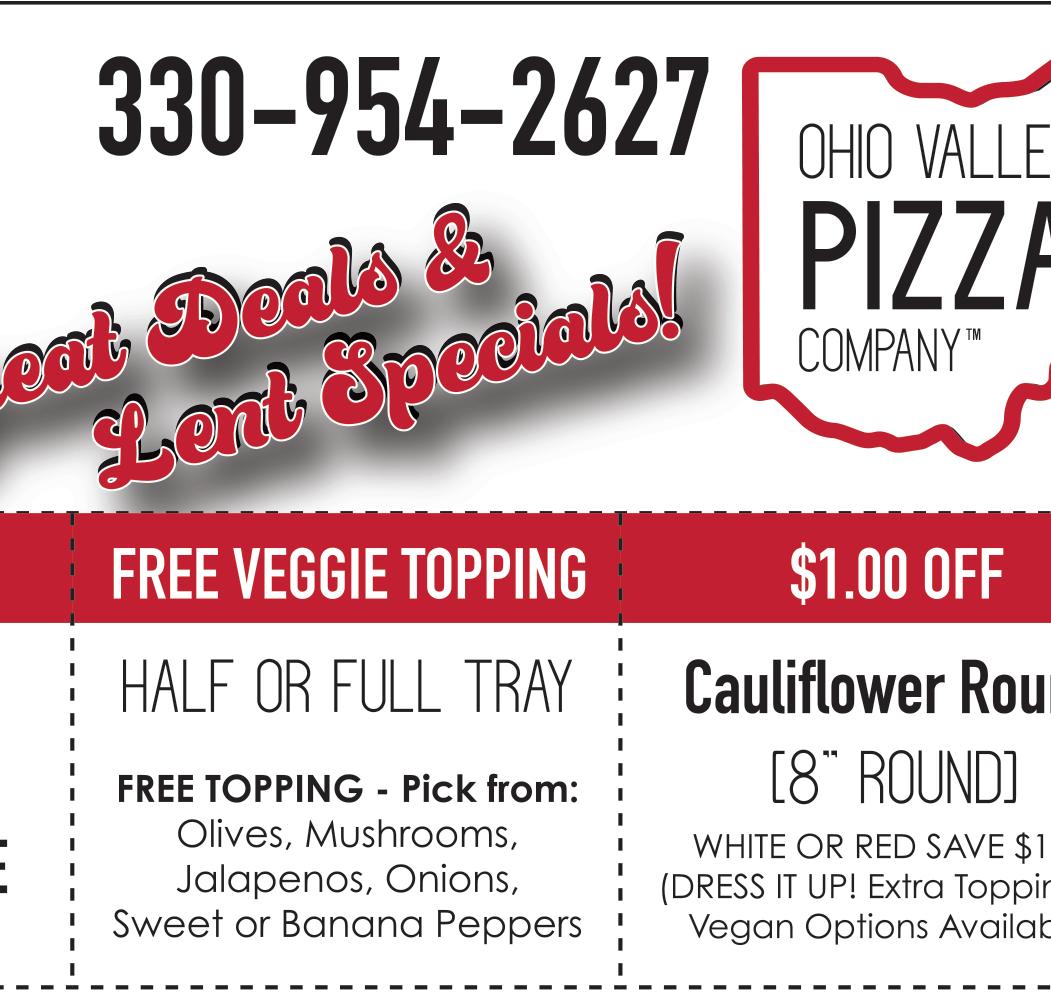 Purchase a Bath & Styling & Receive a FREE NAIL TRIM Purchase 4 Full Daycare Days for $120 & Receive 2 FREE 1/2 PRICE DAYS OF DAYCARE During the Month of February Not to be used in conjunction with any other coupons or discounts. Expires 2/28/21. Not to be used in conjunction with any other coupons or discounts. Expires 2/28/21. To Advertise in the Next Issue Call Kerri at 330-350-3141 • In Homes March 11th• Deadline Feb. 26th LUNCH: MON-THURS: 11AM-3PM MON-THURS: CLOSED 3PM-4:30PM ONLY DINNER: MON-THURS: 4:30PM-10PM • FRI & SAT: 11AM-11PM SUNDAY: 12 NOON - 9:30PM $5 OFF Your Total Purchase of $30 or More Not valid with Family Meals or any other offers or discount. Expires 3/11/21 DINING ROOM AND HIBACHI NOW OPEN Hibachi Family Meals To Go HIBACHI FAMILY MEAL FOR 4 $59.95 (1) Hibachi Steak (1) Hibachi Shrimp (2) Kids Hibachi Chicken Includes Edamame, Narumaki, Fried Rice, 2 Salads & 4 Soups HIBACHI FAMILY MEAL FOR 3 $49.95 (1) Hibachi Steak (1) Hibachi Chicken (1) Kid Hibachi Shrimp Includes Edamame, Fried Rice, 2 Salads & 3 Soups Gift Certificates Available Entire Menu Available for Carry Out All Day!