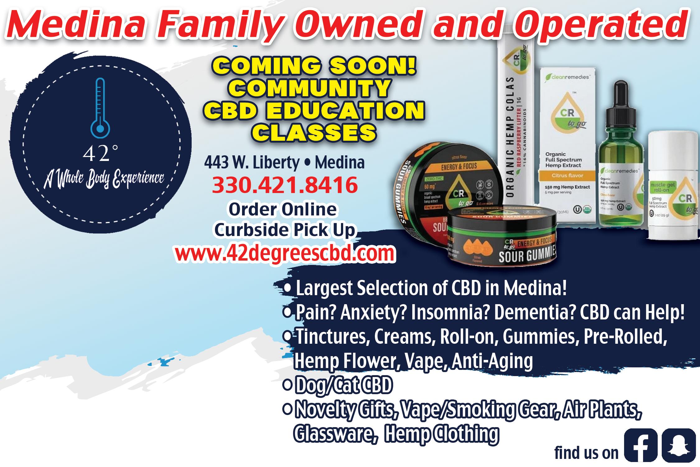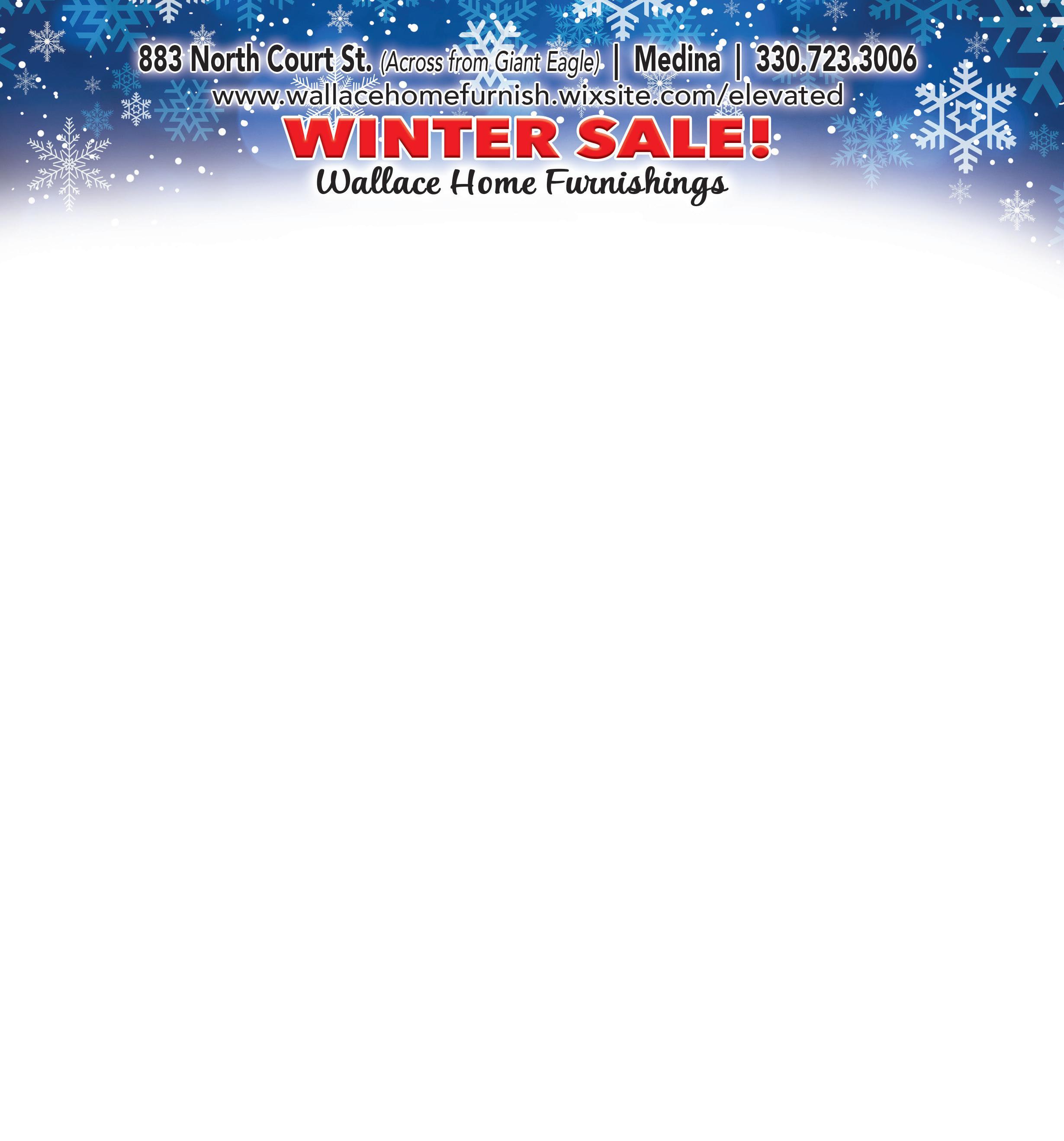 WWW.SPECIALTOUCHCLEANERS.COM Miss Me at Giant Eagle? Firemark insurance agency, inc. Tom DeMarco (330) 635-9480 tomdemarco@zoominternet.net • Medicare Advantage Plans (Most Major Companies Available) • Advantage Plans/Supplements • Zero Premium Plans • Dental, Hearing, Transportation, Meals & Vision Included • Also Included Personal Emergency Response System - No Charge! • Senior Insulin Savings Program Available 10% OFF Your Purchase Not valid with any other offer or discount. Must present coupon at time of purchase. Expires 2/11/21 330-723-1112 Mon & Tue 11am-8pm Wed 11am-6pm Thur & Fri 11am-8pm Sat 10am-8pm • Sun 1-5pm Reservations and Walk-Ins Welcome Gift Certificates Available Please call for more details & sign-up 233 S. Court St. • Historic Medina Kids Clay Prints Friday, January 15th by Appointment Kids Paint Me A Storytime Monday, January 18th @ 4:30pm Adult Clay Workshop Friday, January 21st @ 6pm