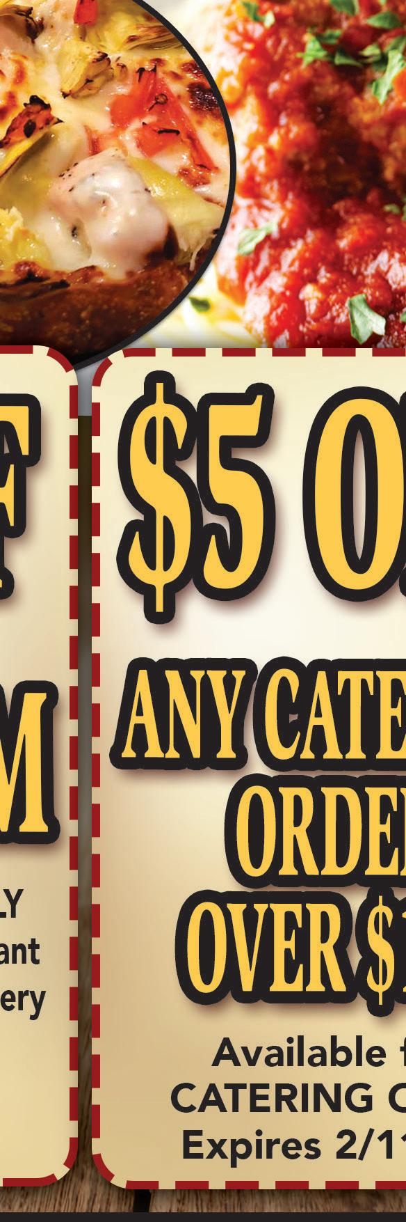 $5 OFF Any Purchase $30 or More One coupon per party. Not valid with other offers. Does not include specials. Expires 2-11-21. EXCLUDES ALCOHOL & BEVERAGES One coupon per party. Not valid with other offers. Does not include specials. Expires 2-11-21. EXCLUDES ALCOHOL & BEVERAGES One coupon per party. Not valid with other offers. Does not include specials. Expires 2-11-21. EXCLUDES ALCOHOL & BEVERAGES $3 OFF Any Purchase $20 or More $2 OFF Any Purchase $10 or More Your Purchase of $30 or More Not to be combined with any other offer. Expires 2/11/21 10% OFF Your Total Bill $5 OFF Not to be combined with any other offer. Expires 2/11/21