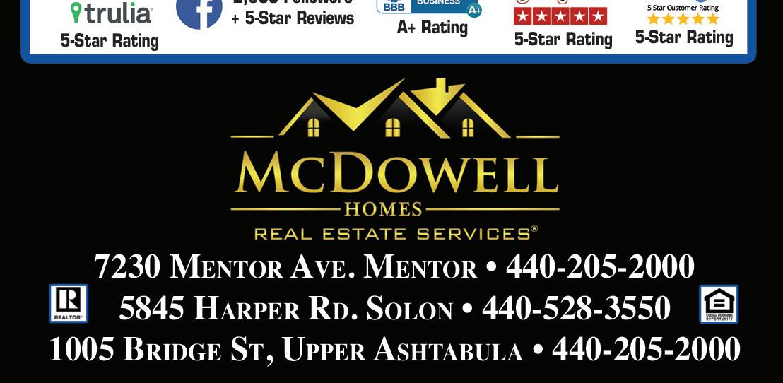 “PASTA FOR PUPPIES!” HAS BEEN RESCHEDULED FOR MONDAY, APRIL 12, 2021. BRING YOUR 2020 TICKET. CALL LINDE AT 440-951-2468 FOR MORE INFORMATION. 7361 Center Street 440-290-8300 We are fortunate to make food for a living. It’s fun and rewarding to satisfy peoples’ taste for good pizza. We love Mentor and the people here. Thank you for the warm welcome. We look forward to cooking for you! Pizza • Subs • Wings Salads • Fries • Onion Rings Mozzarella Sticks • Desserts WE’RE OPEN! SEE OUR FULL MENU ON FACEBOOK CALL OR ORDER ONLINE: www.gliciouspizza.com 440-283-WASH (9274) Mastercard ®VISA • Non-Pressure Roof Washing • House Washing • Deck Staining WetJetPressureWashing.com Your Deck Professionals! TODAY! LET US START YOUR $50 OFF COMPLETE HOUSE WASH We Use Eco Friendly Detergent, Hot & Cold Water, High & Low Pressure Wash Process Removes Mold, Mildew & Algae & Makes Your House Look New Again! Not valid with any other offer. Expires 9-30-2020 Must be complete roof. Not valid with any other offer. Expires 9-30-2020 Includes no-pressure soft-wash method. Removal of unsighlty black mold stains. Will Not Harm Shingles! $75 OFF ROOF CLEANING Wash with Eco Friendly Detergent INCLUDES ONE COAT OF PROFESSIONAL GRADE DECK STAIN OR SEALANT $100 OFF DECK STAINING/SEALING Not valid with any otheroffer. Expires 9-30-2020