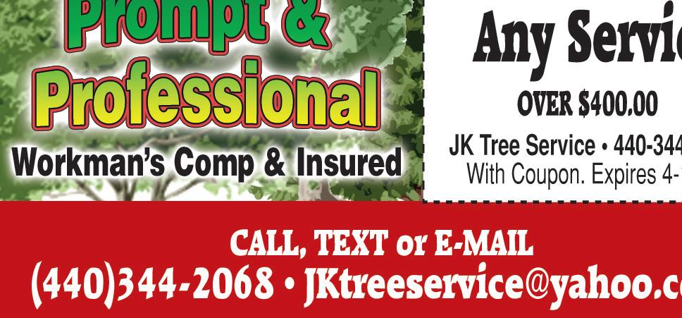 No CAsh Value h5 h11 hh5 11 h5h 11 5h h11 H H SAVE $11.00 WITH THIS COUPON! • Federal Returns • City & State Returns • E-file • direct deposit • Extra forms $22/ea. Get Your Refund Early. Fast. Affordable. Covid-19 Compliant. 11 NORTHEAST OHIO LOCATIONS • www.ZappitelliFinancial.com ZAPPITELLI FINANCIAL SERVICES Certified Public Accountants/Certified Financial Planners 440-354-0375 BUSINESS SUPPORT SERVICES We do the difficult and complicated returns at a great price. Average Return Price $132 - 154.00 $198 - 246.00 Earned Income Credit 5 5 FLAGS & MILITARY ITEMS! FIREARMS STORE & GUNSMITHING • Buy, Sell & Trade • Flags & Military Items • CCW Classes • Home Defense • Refresher Courses www.silveradoarms.com 9MM AMMO NOW IN STOCK!