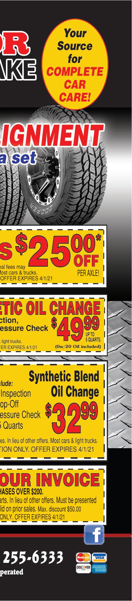 SHOP LOCALLY $$$ SAVE LOCALLY™ • VISIT www.TownMoneySaver.com FOR MORE COUPON SAVINGS! Largest Stocking Dealer in Lake, Geauga & Ashtabula Counties • M-FRI: 8-5 • SAT: 8-2 • SUN: CLOSED CUSTOM MADE AREA RUGS! LET US MAKE YOUR ROOM UNIQUE AS YOU WITH A BEAUTIFUL CUSTOM MADE RUG! 4520 Beidler Rd • Willoughby 440-953-3567 DIRECT FROM MILL... DEEP DISCOUNTS ON CARPET, VINYL LAMIATE, WOOD & TILE! THREE-ROOM SPECIAL $749 Plush Carpeting • 5 to Choose From Valid for 3 Rooms up to 144 sq.ft. each CARPET PADDING INSTALLATION CARPET & FLOORING MILL OUTLET WITH COUPON. NOT VALID WITH OTHER OFFERS. EXPIRES 4/1/21 $3399/per yard (3.78 per sq. ft.) 75 oz. MOHAWK PATRIOT Everstrand Continuum STAIN, SOIL & PET URINE RESISTANCE Anti-Static 12 Colors! 70 oz. SILKY SOFT CARPET SEVEN WONDERFUL COLORS! $3699/per yard (4.11 per sq. ft.) Price Includes: Carpet, 8lb. Pad & Professional Installation AVAILABLE FOR IMMEDIATE INSTALLATION! CARPET & FLOORING MILL OUTLET WITH COUPON. NOT VALID WITH OTHER OFFERS. EXPIRES 4/1/21 Price Includes: Carpet, 8lb. Pad & Professional Installation AVAILABLE FOR IMMEDIATE INSTALLATION! CARPET & FLOORING MILL OUTLET WITH COUPON. NOT VALID WITH OTHER OFFERS. EXPIRES 4/1/21 CLICK LVT VINYL PLANK $2.19/sq. ft. Starting at CARPET & FLOORING MILL OUTLET WITH COUPON. NOT VALID WITH OTHER OFFERS. EXPIRES 4/1/21 MANY PATTERNS IN STOCK! ABSOLUTE BEST PRICE ON COREtec! ALL IN-STOCK! COREtec One..................$4.09sq.ft. COREtec Plus..................$4.29sq.ft. COREtec Plus XL............$5.59sq.ft. COREtec Plus HD............$5.59sq.ft. COREtec Plus Design...$5.59sq.ft. COREtec Plus XLE.........$5.59sq.ft. CARPET & FLOORING MILL OUTLET WITH COUPON. NOT VALID WITH OTHER OFFERS. EXPIRES 4/1/21 “Our Prices and Selection will FLOOR You!” WE GIVE THE BEST PRICE ON LUXURY VINYL TILE CARPET & FLOORING MILL OUTLET WITH COUPON. NOT VALID WITH OTHER OFFERS. EXPIRES 4/1/21 IN-STOCK & READY FOR IMMEDIATE INSTALLATION! 14 COLORS TO CHOOSE FROM Our MOST Popular Carpet! $1999/per yard Price includes: Carpet, 8lb. Moisture Barrier Pad & Professional Installation 7488 Mentor Avenue Mentor • 440-946-3995 4839 Robinhood Dr. Willoughby • 440-946-9393 Mon-Sat: 10:30am - 9pm / Sunday 11am - 8pm Mon-Thur: 10:30am-9pm / Fri & Sat: 10:30am-10pm / Sunday 11am - 8pm Online ordering: mrhero.com Hot Buttered Cheesesteak™ Famous Romanburger® FAMILY PACK NO LIMIT! NO LIMIT! NO LIMIT! Sunday Only! Extra for BTE. Valid only at 7488 Mentor Ave. & 4839 Robinhood Dr. Not valid with any other offers, online ordering or delivery. EXPIRES 4-1-21 Any 10” Sandwich $4.95 Any 7” Sandwich $19 Any Four 7” Sandwiches $6.95 4- Sandwiches 4- Reg. Potato Waffers® 2- Liter of Pepsi® 7” .......$29.99 +tax 10” .....$33.99 +tax NO LIMIT! NO LIMIT! NO LIMIT! Extra for BTE. Valid only at 7488 Mentor Ave. & 4839 Robinhood Dr. Not valid with any other offers, online ordering or delivery. EXPIRES 4-1-21 Extra for BTE. Valid only at 7488 Mentor Ave. & 4839 Robinhood Dr. Not valid with any other offers, online ordering or delivery. EXPIRES 4-1-21 Extra for BTE. Valid only at 7488 Mentor Ave. & 4839 Robinhood Dr. Not valid with any other offers, online ordering or delivery. EXPIRES 4-1-21 Extra for BTE. Valid only at 7488 Mentor Ave. & 4839 Robinhood Dr. Not valid with any other offers, online ordering or delivery. EXPIRES 4-1-21 NO LIMIT! Extra for BTE. Valid only at 7488 Mentor Ave. & 4839 Robinhood Dr. Not valid with any other offers, online ordering or delivery. EXPIRES 4-1-21 7” Romanburger® OR 7” Hot Buttered Cheesesteak™ $4.50 WITH THE PURCHASE OF ANY 14” SANDWICH AT REGULAR MENU PRICE FREE 7” SANDWICH