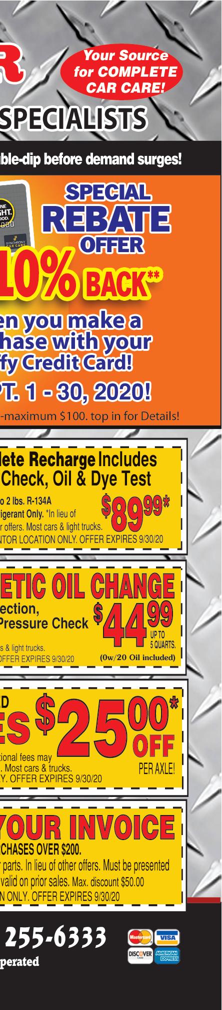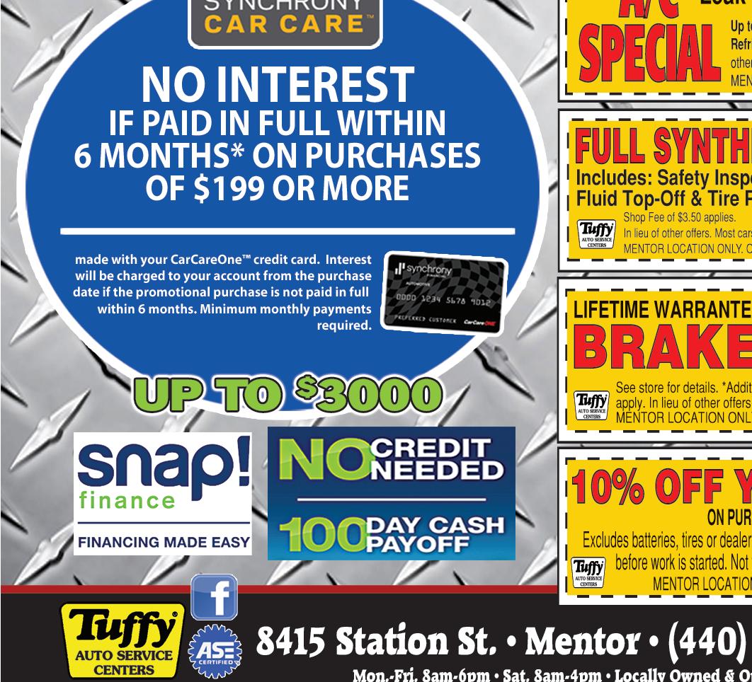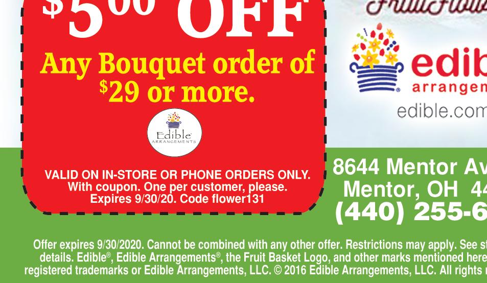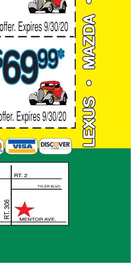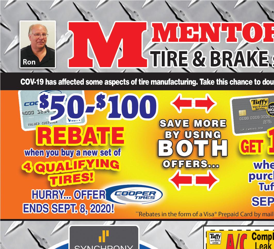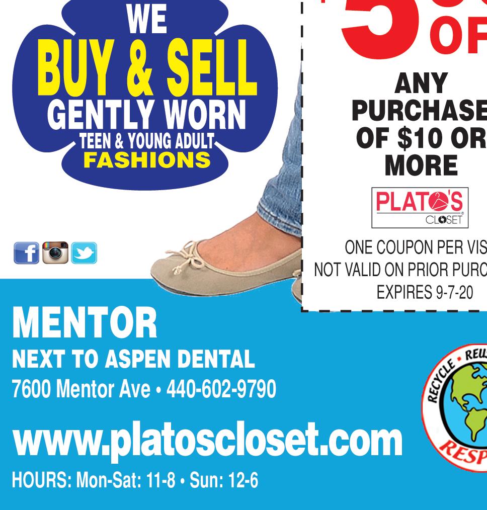 SHOP LOCALLY $$$ SAVE LOCALLY™ • VISIT www.TownMoneySaver.com FOR MORE COUPON SAVINGS! “Quality Without Question” since 1987 • Plumbing New & Repairs • Sewer & Drain Cleaning • Video Inspection • Complete Bathroom Remodeling • Electric & Back-up Sump Pumps ® Maste card VISA 8775 East Ave. • Mentor www.myplumberinc.com Dan Zappola OH LIC #27346 Any Complete Water Heater or Tane Water Commander Back-up Sump Pump With Coupon. Expires 9-30-20 Any Service Charge With Coupon. Expires 9-30-20 Any Bathtub or Shower Replacement With Coupon. Expires 9-30-20 $20 OFF $100 OFF $50 OFF 440-257-0061 440-946-1810 Residential • Commercial • Remodeling WE ARE ESSENTIAL & OPEN FOR BUSINESS www.MentorFamilyRestaurant.com Check out our ratings from the Health District at www.healthspace.com/Clients/Ohio/Lake/Lake_Web_Live.nsf WE ACCEPT ANY COMPETITORS CURRENT COUPONS CLASSIC BREAKFAST & CRISP SALAD BAR 6888 CENTER STREET • MENTOR • 440-255-8810 ON 615 AT TYLER BLVD. Check out our reviews on Google! EARLY BIRD SPECIALS ONLY $5.99 • 8 CHOICES TUES.- FRI. 2-5PM WE SERVE BRUNCH DAILY! Buy One Breakfast, Lunch or Dinner and 2 Beverages, at menu price, get the Second Breakfast, Lunch or Dinner of equal or lesser value FREE! FREE MEAL! Breakfast ($4 Max. Discount) Lunch ($5 Max. Discount) Dinner ($6 Max. Discount) DINE-IN ONLY Cannot combine with other offers, specials or discounted items. Expires 9-30-20 PLEASE PRESENT COUPON TO SERVER AT TIME OF ORDERING DINE-IN ONLY Cannot combine with other offers, specials or discounted items. Expires 9-30-20 PLEASE PRESENT COUPON TO SERVER AT TIME OF ORDERING $5 OFF Any Purchase of $30 or more. $4 OFF Any Purchase of $25 or more. $3 OFF Any Purchase of $15 or more. $2 OFF Any Purchase of $10 or more.