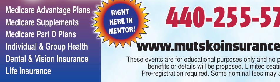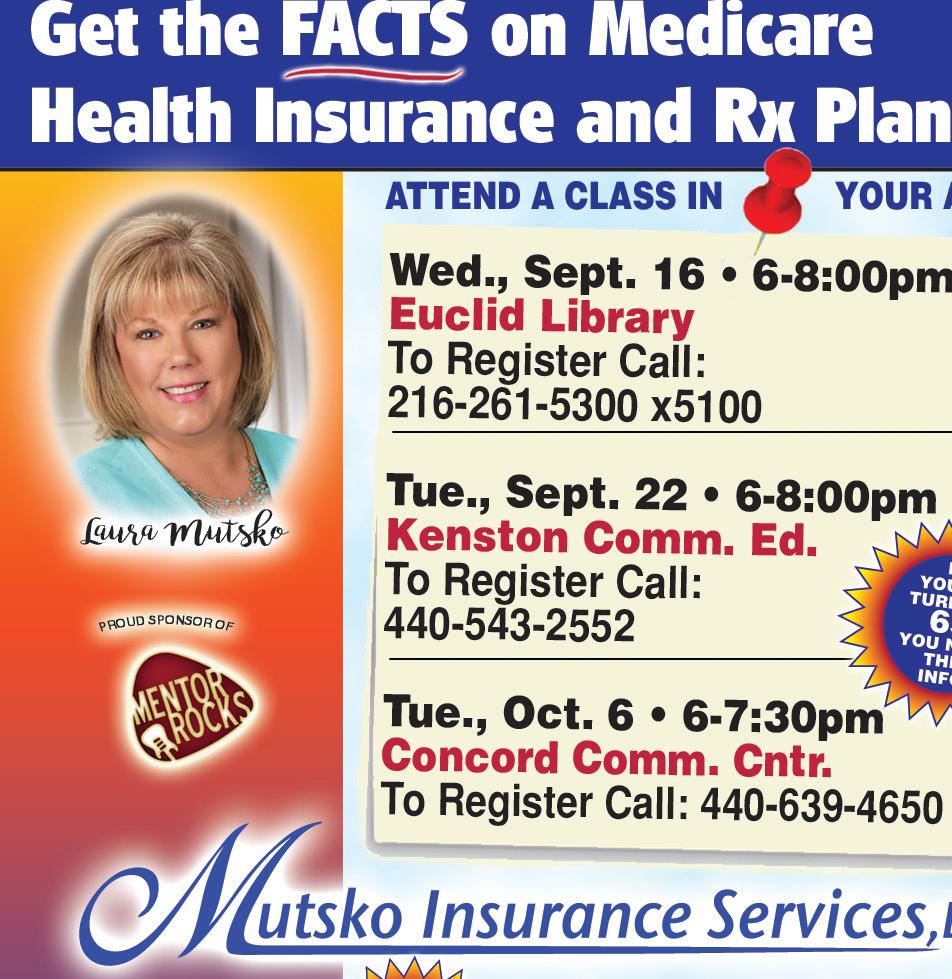 440-946-3333 • www.LakeshoreEateryMentor.com 7272 Lakeshore Blvd. (Just West of Rt. 306) TUESDAY - SATURDAY 11am-8pm • SUNDAY 8am-2pm SUBJECT TO CHANGE Distanced Dining Enabled OPEN FOR DINE-IN, CARRY-OUT & DELIVERY OPEN TO THE PUBLIC • CURBSIDE SERVICE IS AVAILABLE MASKS MADE IN MENTOR, OHIO USA “A SMALL BUSINESS DOING BIG THINGS” • N95 Masks • Face Shields • Surgical Masks • Hand Sanitizers • Disposable Gowns • Vinyl Gloves • Infared Thermometers ...and more! “At RB Medical Supply we’ve got you covered, literally.” FREE MASKCLIP with any new in-store purchase of $25 or more. WITH THIS COUPON. OFFER EXPIRES. 9-30-2020 MASKS AS LOW AS 50¢ 6113 Heisley Rd. Mentor • 440-290-0577 • www.rbmedicalsupply.com Monday - Friday 8:30 - 6:00 CLASSROOM COVID KITS