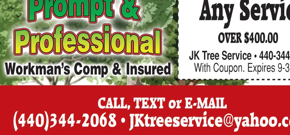 SHOP LOCALLY $$$ SAVE LOCALLY™ • VISIT www.TownMoneySaver.com • Grilled Subs • Cold Subs • Wraps • Salads • Fresh Cut Fries • Fresh Squeezed Lemonade • Catering MENTOR 7240 Mentor Avenue 1/4 Mile West of Rt. 306 9383 Mentor Avenue Corner of Rt. 20 & Heisley VALID AT MENTOR LOCATIONS ONLY Mon-Sat 11a-10p; Sun. 12-8p Buy Any Size Sub, Receive a FREE Small Sub PENN STATION. With this coupon. Not valid with any other offers. Expires 9/30/20 CALL OR TEXT TODAY! (440) 269-8830 Joe Kleinhenz & Joe Corlette treat each lawn as if it were their own. They take pride in their work and care about your satisfaction because that’s their business. The Honest, Fair, Dependable Owner/Operators FREE ESTIMATES Fully Insured • Residential & Commercial AERATION SPECIAL Lawn Maintenance • Fertilization Weed Control Spring & Fall Clean-Up Bush & Tree Pruning New Lawn & Landscape Install Landscape Design Mulch, Soil & Gravel Installation $250 OFF Any Lawn or Landscape Install of $2000 or more. K&C Lawn • With this Coupon. Not valid on previous work. Can not be combined with other offers. Expires 9-30-20 CALL FOR DETAILS!