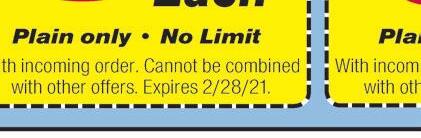 Westlake 30610 Detroit Rd. 440-835-6935 $400 OFF Any Purchase of $20 or More (Tax Not Included) Dine In or Carry Out. Valid at all locations listed. One coupon per table per party. Not valid w/any other offers or special of the day. Not valid on alcohol. Exp 2-11-21 $600 OFF Any Purchase of $30 or More (Tax Not Included) Dine In or Carry Out. Valid at all locations listed. One coupon per table per party. Not valid w/any other offers or special of the day. Not valid on alcohol. Exp 2-11-21 $1000 OFF Any Purchase of $50 or More (Tax Not Included) Dine In or Carry Out. Valid at all locations listed. One coupon per table per party. Not valid w/any other offers or special of the day. Not valid on alcohol. Exp 2-11-21 NO NO NO Additional Parking in Rear N S Crocker Bradley Detroit RT 90 FREE WIFI Serving Liquor 7 Days a Week! Dine-In/Carryout Prepared Fresh Daily Gift Certificates Available ONLINE ORDERING Visit donramon-granfiestamex.com for other locations & menu Visit donramon-granfiestamex.com for other locations & menu Don Ramon Mex Westlake Valentine’s Day Special Sunday, Feb 14th Buy 1 Entrée Get the 2nd for 1/2 OFF (equal or lesser value) Must Bring In Coupon Dine In Only. Valid at all locations listed. One coupon per table per party. Not valid w/any other offers or special of the day. Valid only on 2-14-21. Order Your Chips & Salsa for Your SUPER BOWL PARTIES