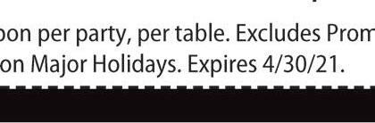 17500 Madison Ave. Lakewood 216.302.2401 GOLD PLAN Reduced Fee Dental Membership Program starting at $1050 /mo for Single Members Call 1.800.742.8710 x102, x103, or x113 to Enroll Family & business plans available. SIMPLE EXTRACTIONS $85 With this coupon and payment in full at time of service. Not valid with any other offer, discount or program/plan. Offer subject to change at any time. ($125 Value) CROWNS $535 With this coupon and payment in full at time of service. Not valid with any other offer, discount or program/plan. Offer subject to change at any time. ($850 Value) Porcelain Fused to Metal First Time: Up to 12 Extractions. Additional Extractions Slightly More. Does not include Relines $3,900 value. $1,930 $1,200 With this coupon, our Gold plan and payment in full at time of service. Not valid with any other offer, discount or program/plan. Offer subject to change at any time. DENTURE PACKAGES Dentures Only. Full set: upper and lower. No extractions. Does not include Relines. $2,400 value. IMPLANTS $1,995 Simple Abutment & Crown (Excludes Extraction & Bone Graft) $2,750 value. Lakewood, Sawmill & Whitehall offices only With this coupon, our Gold plan and payment in full at time of service. Not valid with any other offer, discount or program/plan. Offer subject to change at any time. Dentist contact info at ComfortDental.com. Comfort Dental-branded dental practices are independent franchises owned and operated by state licensed dentists or orthodontists. The Gold Plan discount program is NOT a health insurance policy and does not make payments irectly to medical service providers. Members are bligated to pay for all medical services, but may receive discounts on medical services from participating providers and the discount range will vary depending on provider type and medical services from participating providers and the discount range will vary depending on provider type and medical services received. The program does not meet the minimum credible coverage requirements under any law and is not a Qualified Health Plan under the Affordable Care Act. If you cancel within the first 30 days after activation you will receive a full refund, except for enrollment fee where permitted by law. Program administered by Comfort Dental Gold Plan, LLC, 2540 Kipling St., Lakewood, CO 80215, 1-800-742-8710, goldplan@comfortdental.biz, www.comfortdental.com O O I LA WOO 18 Ohio offices at 1.855.808.0075 Circleville, Delaware, Gahanna, Grove City, Hamilton**, Heath**, Hilliard, Lakewood**, Lancaster, Marion, Mt. Vernon**, N. Columbus**, Sawmill*, *, Xenia Each Comfort Dental office is owned and operated by an independent franchisee M-F 7:30a-7:30p Sat 7:30a-1:30pm We accept most insurances and we offer financing ComfortDental.com Accepting Medicaid NOW OPEN IN LAKEWOOD! Westlake 30610 Detroit Rd. 440-835-6935 $400 OFF Any Purchase of $20 or More (Tax Not Included) Dine In Only. Valid at all locations listed. One coupon per table per party. Not valid w/any other offers or special of the day. Not valid on alcohol. Exp 4-15-21. $600 OFF Any Purchase of $30 or More (Tax Not Included) Dine In Only. Valid at all locations listed. One coupon per table per party. Not valid w/any other offers or special of the day. Not valid on alcohol. Exp 4-15-21. $1000 OFF Any Purchase of $50 or More (Tax Not Included) Dine In Only. Valid at all locations listed. One coupon per table per party. Not valid w/any other offers or special of the day. Not valid on alcohol. Exp 4-15-21. NO NO NO Additional Parking in Rear N S Crocker Bradley Detroit RT 90 FREE WIFI Serving Liquor 7 Days a Week! Dine-In/Carryout Prepared Fresh Daily Gift Certificates Available Not to be combined with any other offer or coupon. Dine-In Or Carry Out. Of equal or greater value. Dine in only. Not valid with any other specials or coupons. MUST MENTION AD Open Easter ONLINE ORDERING Visit donramon-granfiestamex.com for other locations & menu Visit donramon-granfiestamex.com for locations & menu Don Ramon Mex Westlake
