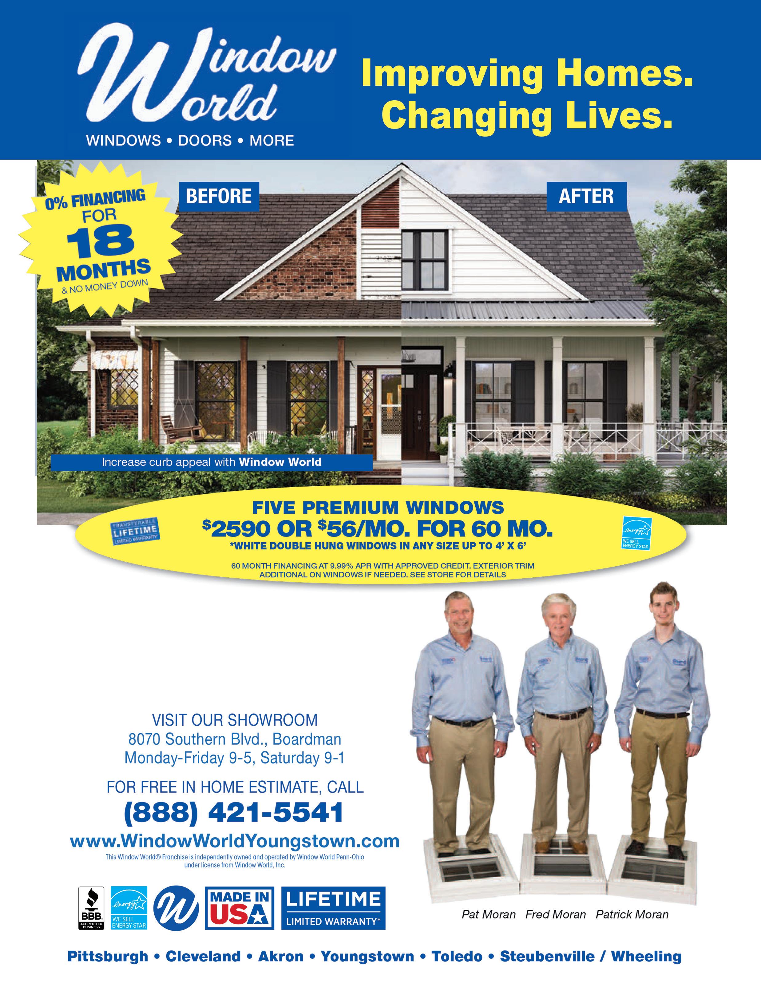 VISIT OUR SHOWROOM 562 South Reynolds Rd., Toledo Mon-Fri 9am-5pm • Sat 9am-1pm Window World is America’s Largest Exterior Remodeler. With Over 1.5 Million Windows Sold in 2020 alone! We are proud to offer low-maintenance, energy-efficient solutions with exceptional customer service and attention to detail that you’ve come to expect from America’s #1 exterior remodeler. 419-740-5191 WindowWorldToledo.com FOR FREE IN HOME ESTIMATE, CALL Local Owners WITH SOLARZONE INSULATED GLASS