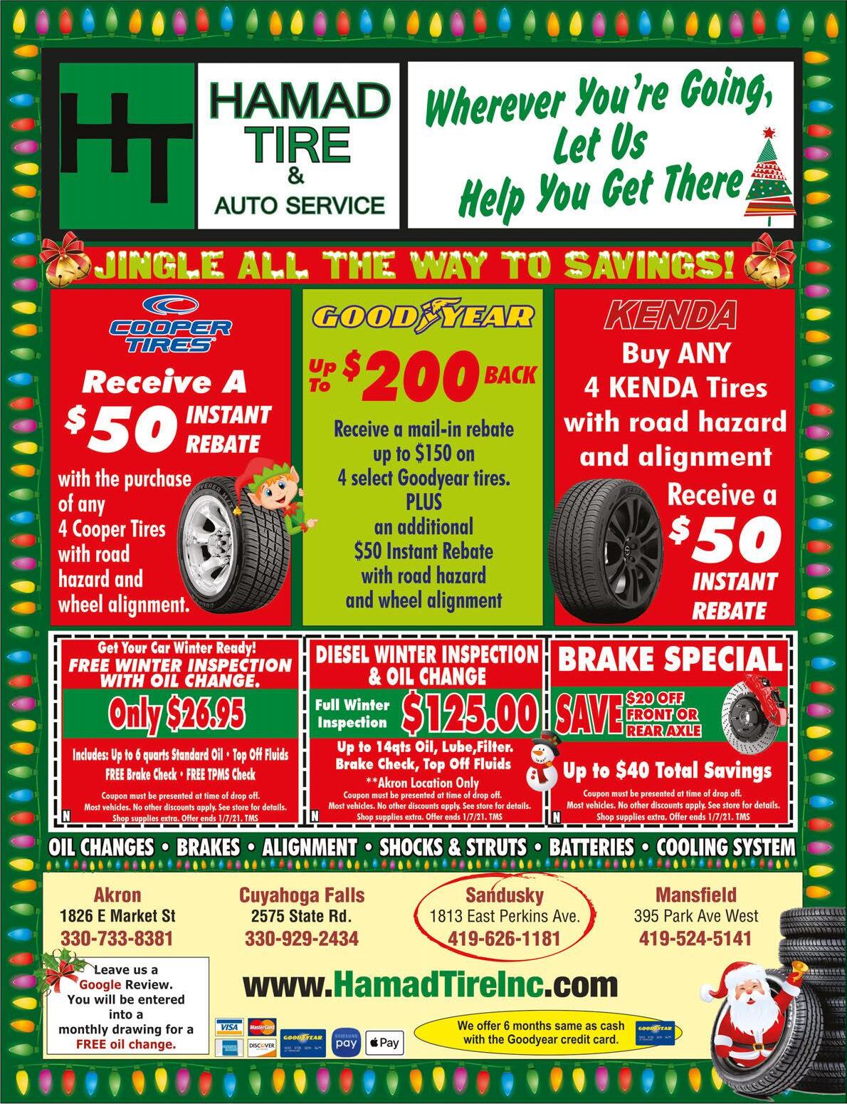 419-668-3071 Rt. 20 • 274 Cleveland Rd. • Norwalk www.williamsnorwalktire.com THE GIFT OF SAFETY LASTS ALL YEAR LONG! CALL 419-668-3071 FOR EXPERIENCED AUTOMOTIVE REPAIRS! Open Monday-Thursday 7am-6pm Note: May leave early when all work is delivered. Mention this ad when scheduling or dropping off your vehicle for 10% OFF NO LIMIT FOR SAVINGS! Excludes tires, oil changes, and rotations. Exp. 12-31-20.