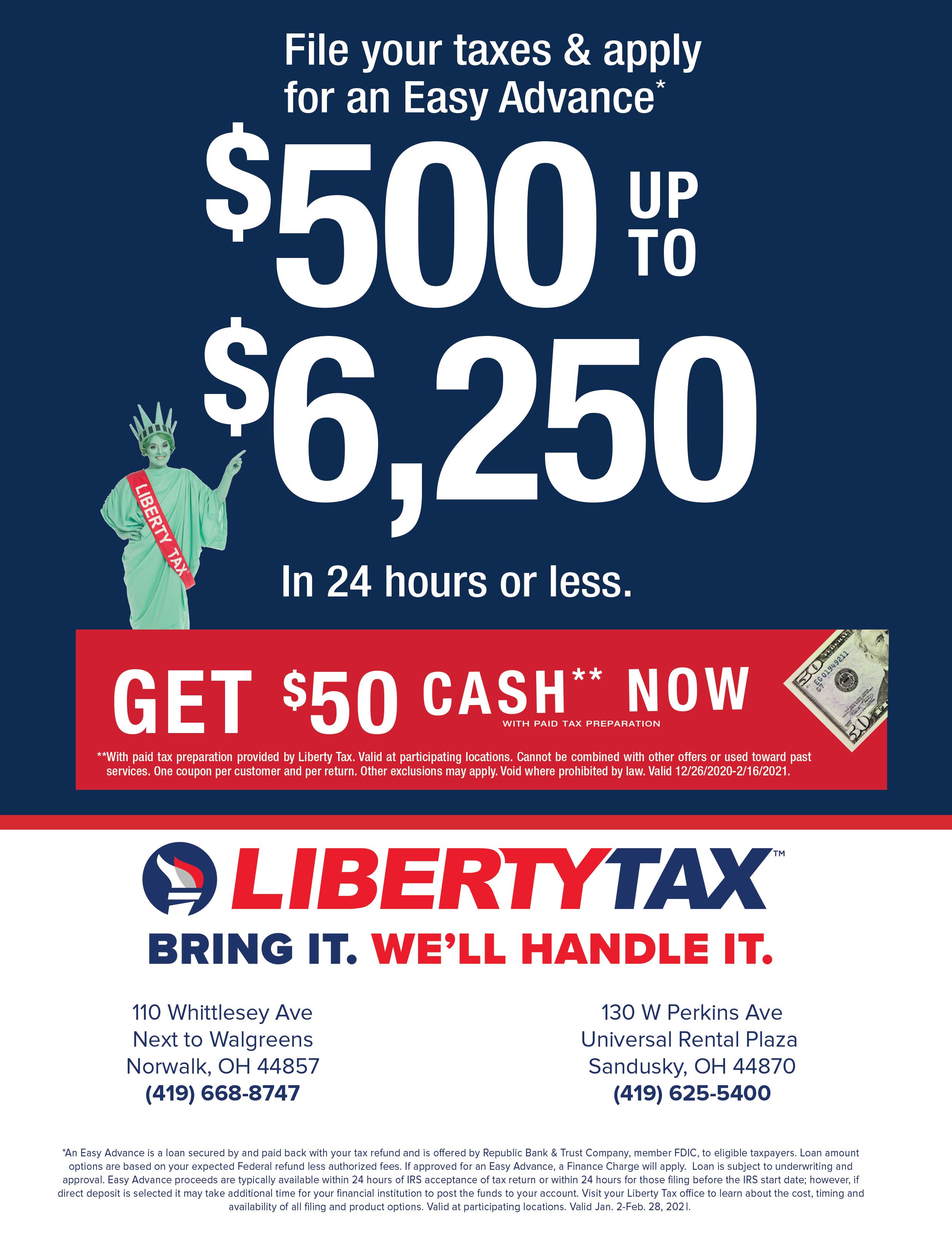 Over 31 years’ experience in tax preparation Attends annual classes for CPE credits Vukmer and Associates 419-663-2950 • 800-700-8948 FREE Consultation with tax preparation With coupon. Not valid with other offers or discounts. Exp. 04-30-21.