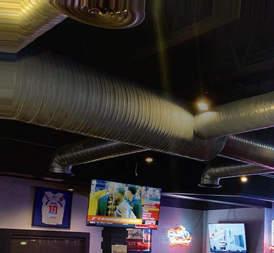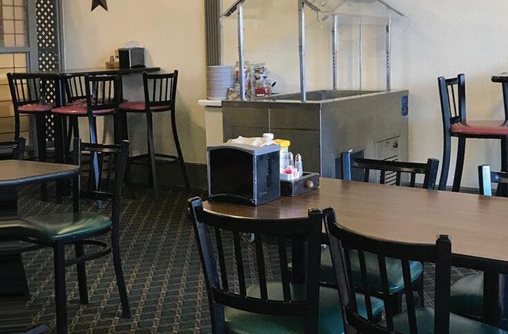 PLASTIC DIVIDERS throughout restaurant.