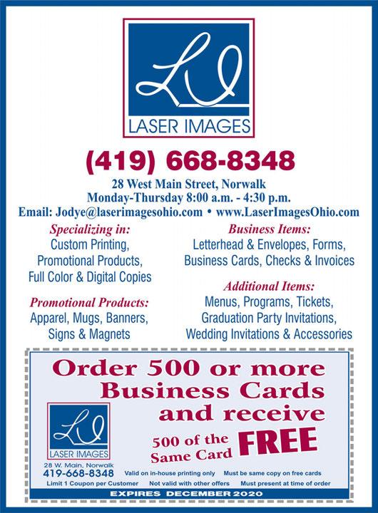 5019 Strecker Road • Monroeville, Ohio 419-271-4082 All Insurance Claims Welcome! We are worth the trip! Our prices are typically 10%-20% below most other body shops! $100 OFF $1,000 or more in services With coupon. Not valid with other offers or discounts. Expires 12-01-20. Ohio Turnpike US Rte. 250 Strecker Rd. Rte. 99 ★ CHILL’S • Collision & Refinishing shop • Restorations • Spray-in Bedliners • Undercoating Specialists Party Room • Full Bar Dine-in • Carry-out • Catering 6207 Milan Road • Sandusky, Ohio 419•621•1000 www.dannyboyspizza.com @DannnyBoysPizza1991 NOW HIRING All Positions DINING ROOM OPEN! Doordash DELIVERY NOW HIRING WEEKLY PAY • ALL SHIFTS UNLIMITED $400 REFERRAL BONUSES Surge Staffing has immediate openings. Call today! (419) 469-5401 HEALTH / DENTAL / VISION 26 West Main Street Norwalk, OH