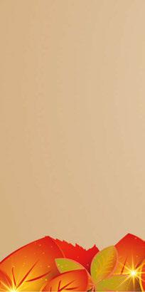 • I will improve and enhance the economic development e orts of Huron County. • I will consider all townships, villages, and cities in decisions for the betterment of the whole county. • I will work to improve and enhance veteran and senior programs. ...and most important of all • I will give you a voice! Like you, I live in Huron County, and I care about Huron County as much as you do. Visit my Facebook page. Call me at 419-921-6482. Send an email to mjames11960@yahoo.com. Your questions and concerns matter to me, and I will be there to listen. ote! Melissa James for Huron County Commissioner You Have a Voice...and a Choice! Paid for by the Committee to Elect Melissa James Commissioner, Karen Prelip, Treasurer. Positively the right choice! Thanksgiving Catering BlueCateringRibbon 1023 Main St. • Huron www.blueribboncaters.com blueribboncaters@gmail.com 419-668-4000 Let Us Take Care of the Cooking for You! Offering oven-roasted turkey, with homemade dressing and sides...or our famous honey-glazed ham, alone or with all the fixings. You decide! Call or email for information on prices and pick-up. Order deadline is November 19th. Check out our Facebook page for Friday night pick-up specials throughout the holiday season!