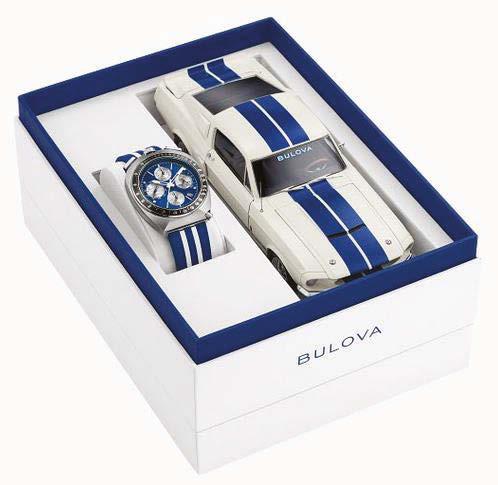 Experience the thrill of speed, right on your wrist. As part of a new collaboration for Bulova’s 150th Anniversary, the new limitededition Bulova Racing Chronograph combines legendary muscle car customizer Carroll Shelby’s trailblazing racing style with Bulova’s innovative watchmaking technology. Inspired by the massive po wer of the 1967 Shelby Ford Mustang GT500, the angular bullhead case offers a dramatic presence on the wrist, recalling the aerodynamic lines of that iconic car and including a black tachymeter ring, sapphire crystal, 12 o’clock crown and pushers, and a gr ooved midcase echoing the car’s racing stripes. With the Shelby Cobra logo nestled in the 3 o’clock register, the dial roars to life with 8 -hand chronograph functionality including timing to an astonishing 1/1000 second, powered by Bulova’s proprietary hi gh precision quartz Precisionist movement, resonating at a frequency of 262khz for unparalleled accuracy and allowing a sweeping chronograph hand. With an individually numbered polished case back bearing Shelby’s signature and delivered in a limited -edition box with a 1:24 die-cast model of the GT500, the new Racing Chronograph brings the power of Shelby’s creations to your wrist for unparalleled style. Limited to 7,500 pieces worldwide.