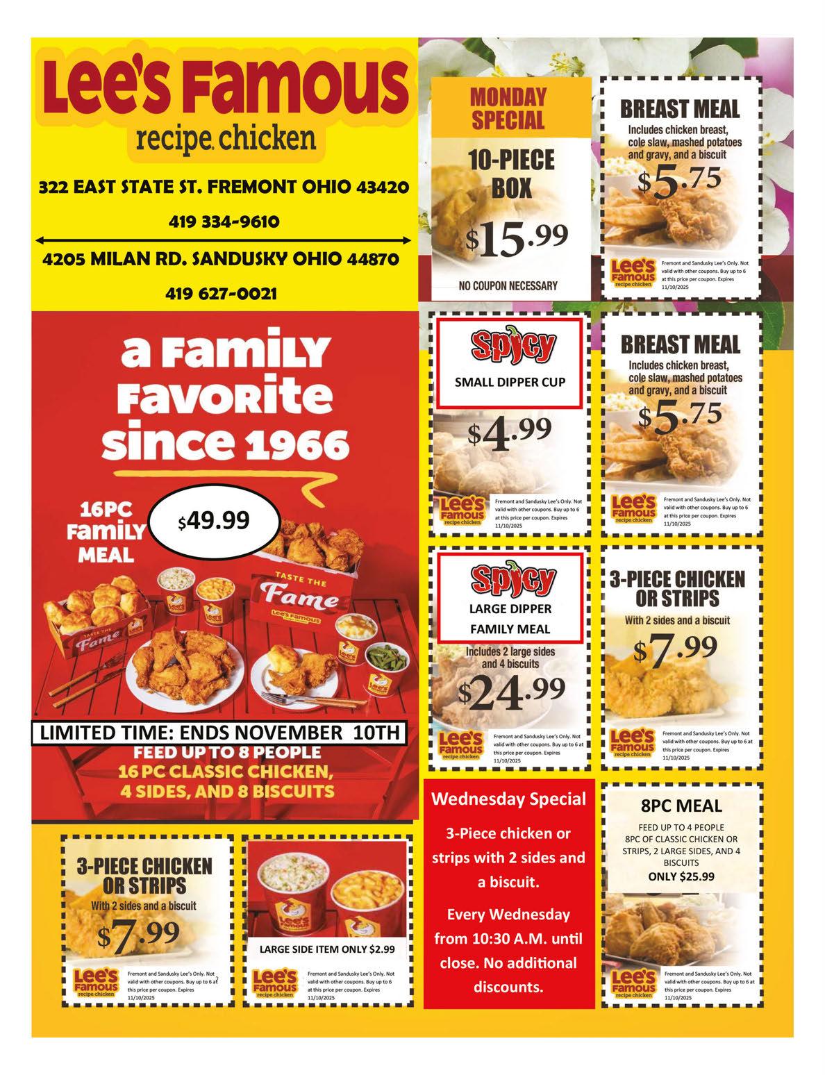 WEDNESDAY: NEW Three Pointer—$9.99, includes a Drink (soda, tea, lemonade) a Sandwich (BBQ Pulled Pork, Grilled Chicken, or Crispy Chicken), and Fries (Waffle or Steak) NO SUBSTITUTIONS *We still have kids eat free with an adult meal, and yes, the Three Pointer qualifies as a meal.