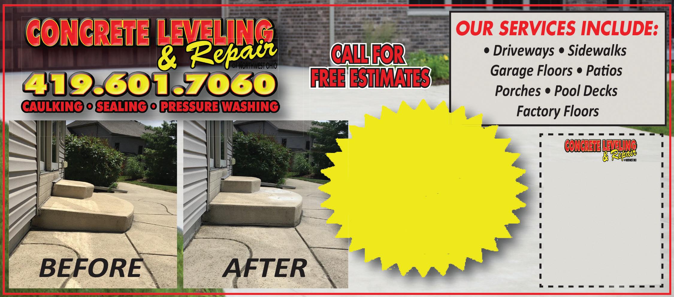 • Power Washing • Sealing www.hiteconcrete.com Ask about our NEIGHBORHOOD referral discount! Licensed & Insured. Locally owned & operated - Serving Ohio, Michigan & Indiana 10% OFF Any Concrete Leveling Job! OF $200 OR MORE! Must present coupon at time of acceptance. Expires 8/31/20 419-875-4279 1-866-404-4483