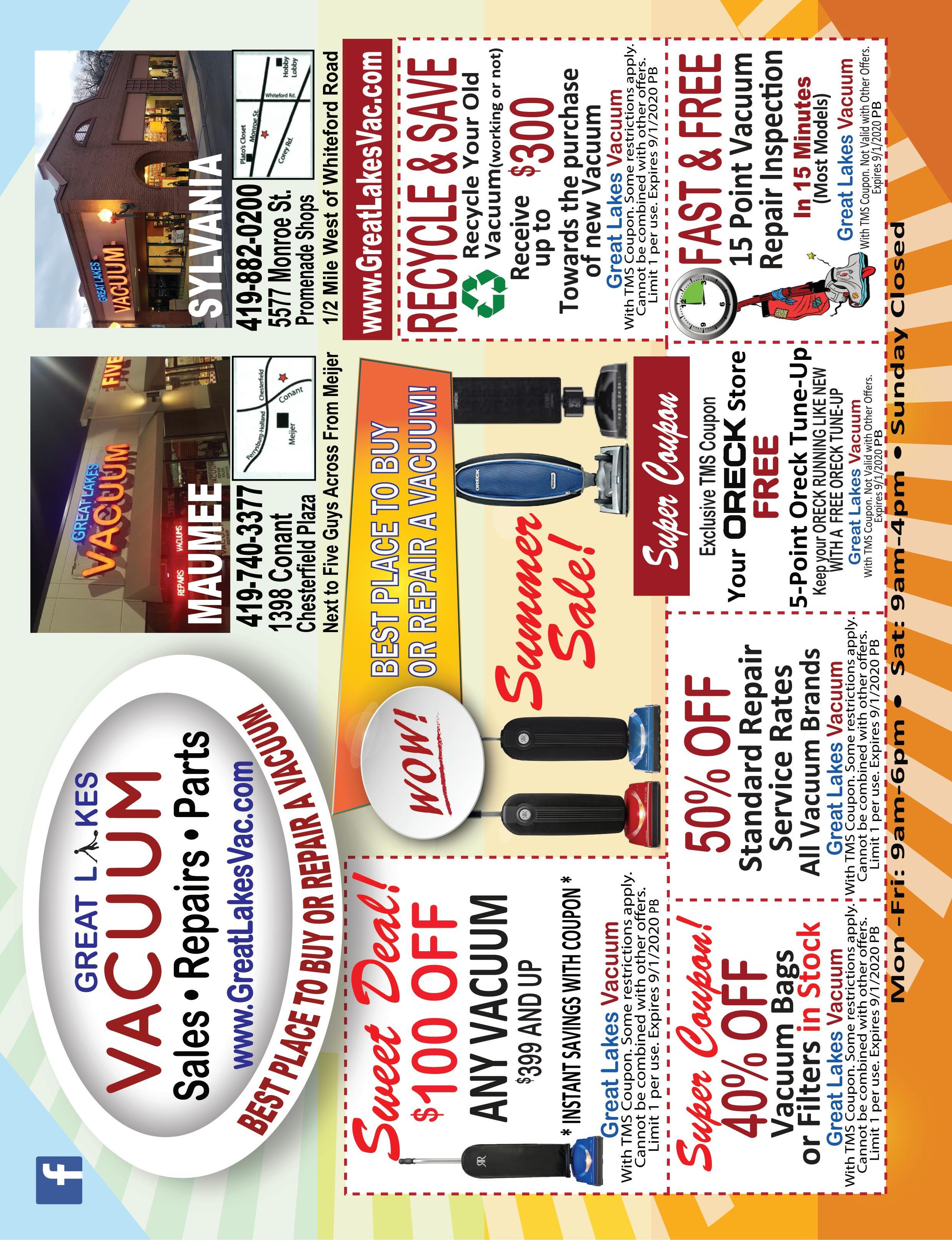 Other Healthy Tips Thank you for Donating! Take care of your bodyIt’s the only one you’ve got! NEW DONOR BONUS* $10 CSL Plasma Good for You. Great for Life. Earn Up to 400 This Month!* $ Donate today at CSL Plasma CSL Plasma 2035 S. Reynolds Road, Toledo, OH 43614 567-803-0476 Your rst donation can take up to 2 hours. WE USE •1 STEP DISINFECTANT •EPA REGISTERED GERMICIDAL SPRAY MAUMEE LOCATION! 201 ILLINOIS AVE 419-893-1406 Not valid with any other o ers. Expires 9/30/20 325 175 NowOnly! Save $150 * $60 Charge per hour for above average soiled vehicles. • • • • • Visit us at expressocarwash.com for a location near you EVERY CAR DISINFECTED PROFESSIONALLY! Not valid with any other o ers. Expires 9/30/20 225 125 SUMMER SANITZE DETAIL NowOnly! Save $100 * $60 Charge per hour for above average soiled vehicles. SUMMER SANITZE DETAIL ALL Vehicles Disinfected! ALL Vehicles Disinfected!