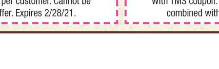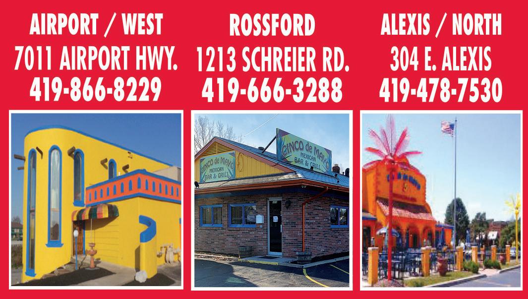 LUNCH SPECIAL $599 Any Lunch With TMS coupon. Dine in only. One coupon per person. Not valid with any other offers. Exp. 2/28/21 Lunch Menu Only. MEXICAN GRILL & BAR Purchase your MARGARITA TO - GO with your TAKE-OUT ORDER 5demayotoledo.com Call for Live Music Informaton at your closest Cinco de Mayo location Come see us at our 3 original CINCO DE MAYO locations! Drinks & Appetizers 1/2 OFF HAPPY HOUR EVERYDAY 3pm-5:30pm Any purchase of $30 or more $5 OFF With TMS coupon. Dine in only. Not valid with any other offers. Exp. 2/28/21 With TMS coupon. Dine in only. Not valid with any other offers. Valid Feb. 14 only Valentine’s Day Special SUNDAY, FEBRUARY 14 ONLY! $25 Fajitas for 2 plus two 12 oz. Margaritas