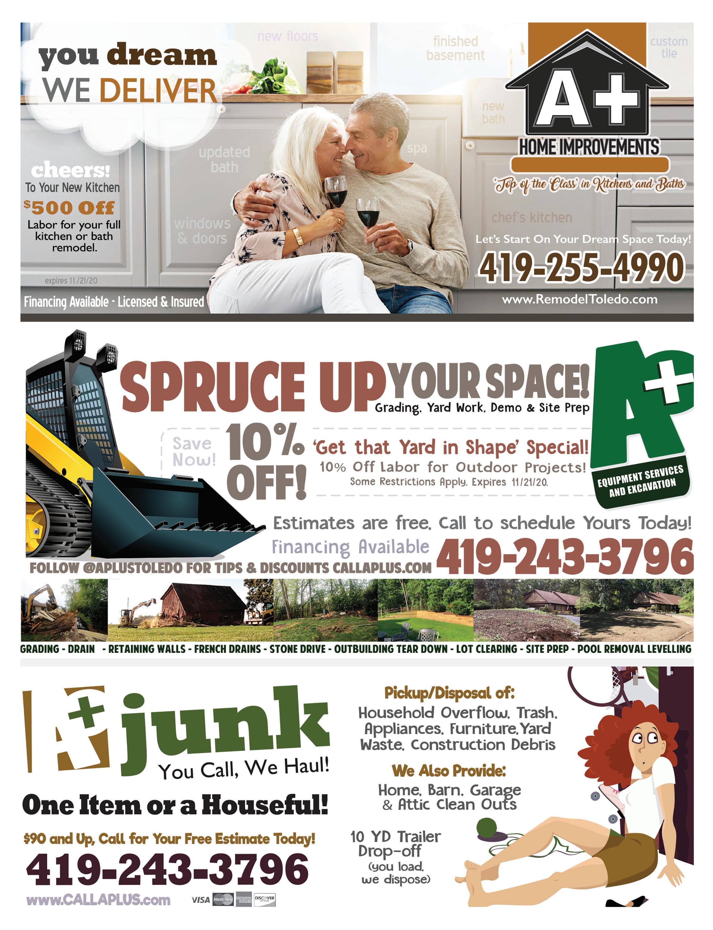WE USE •1 STEP DISINFECTANT •EPA REGISTERED GERMICIDAL SPRAY MAUMEE LOCATION! 201 ILLINOIS AVE 419-893-1406 Not valid with any other o ers. Expires 10/31/20 325 175 NowOnly! Save $150 * $60 Charge per hour for above average soiled vehicles. • • • • • Visit us at expressocarwash.com for a location near you EVERY CAR DISINFECTED PROFESSIONALLY! Not valid with any other o ers. Expires 10/31/20 225 125 FALL SANITZE DETAIL NowOnly! Save $100 * $60 Charge per hour for above average soiled vehicles. FALL SANITZE DETAIL ALL Vehicles Disinfected! ALL Vehicles Disinfected! www.LeafFilter.com/15off Promo Code: 37 LIFETIME WARRANTY THE NA TION’ S GUTTER GUARD1 1-844-440-9814 CALL US TODAY FOR A FREE ESTIMATE *The leading consumer reporting agency conducted a 16 month outdoor test of gutter guards in 2010 and recognized LeafFilter as the “#1 rated professionally installed gutter guard system in America.” *For those who qualify. One coupon per household. No obligation estimate valid for 1 year. CLOG-FREE GUTTERS OR YOUR MONEY BACK GUARANTEED! YOUR ENTIRE LEAFFILTER PURCHASE* Exclusive Offer – Redeem By Phone Today! THE FIRST 50 CALLERS WILL RECEIVE AN ADDITIONAL 15% OFF YOUR ENTIRE INSTALL! **Offer valid at estimate only 10% OFF SENIOR & MILITARY DISCOUNTS FINANCING THAT FITS YOUR BUDGET! 1 1Subject to credit approval. Call for details. 5% OFF PLUS! ADDITIONALLY