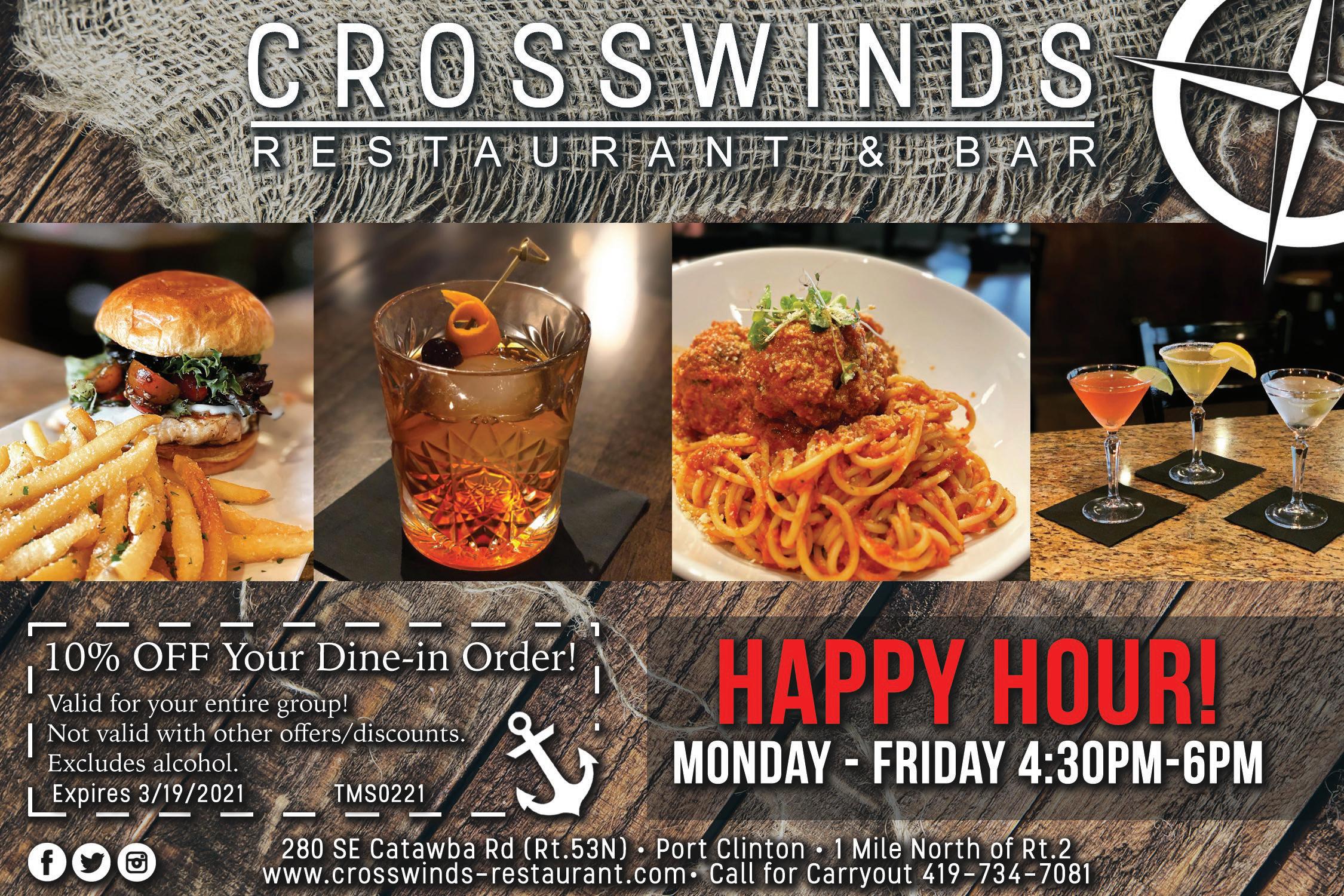 OFFICIAL ESTABL I SHMENT 2170 N. Buck Road • Marblehead, OH 419-734-1742 HAPPY HOUR 4-6:30pm M-F Homestyle Food SPECIALS Sun-Thurs Open 7 Days Mon-Thurs Open at 4pm Fri-Sun Open at Noon 10% OFF Lunch or Dinner DINE-IN ONLY. Not valid with any other discounts. Excludes alcohol. Expires 03-14-21. Serving Prime Rib & Lobster Tails Friday & Saturday! 311 Buckeye Blvd. • Port Clinton • www.twinstarcenters.com 419-734-1001 ...formerly Star Lanes ★ Family party rooms ★ Full bar & restaurant ★ Redemption Center ★ Arcade ★ NEW: Laser tag! Check out the new family attraction in Port Clinton! We’ve been fully remodeled, cleaned, and sanitized. NOW 16 LANES, PLUS 2 HANDICAP LANES! BIRTHDAY PARTIES SUPER DEAL $20 OFF Party of 8 or more. Includes bowling or laser tag, pizza, pop, and a FREE arcade card. With this ad. Expires 03-14-21. — LASER TAG OR BOWLING — BUY 1 GAME, GET 1 GAME FREE With this ad. Expires 03-14-21.