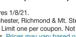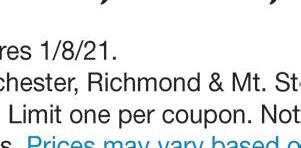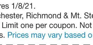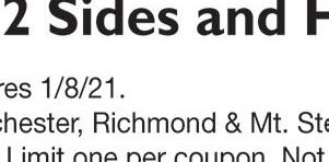 RICHMOND December 2020 Shop locally. Save locally. To advertise, call 270.314.4575 EKU By-Pass Light #9 Richmond 859-623-8561 • thesoftshoe.com $5 OFF Any purchase of $39.99 or higher Includes All Sale Items Excludes prior purchases, other discount offers, and other coupons. Limit 1 coupon per purchase Expires 12/24/20. PROMO CODE: SAVER RICH $10 OFF Any purchase of $75 or higher Includes All Sale Items Excludes prior purchases, other discount offers, and other coupons. Limit 1 coupon per purchase. Expires 12/24/20. PROMO CODE: SAVER RICH Locally Owned & Operated Open Monday thru Friday 10-8 Saturday 9-8, Sunday 1:30-6 HOLIDAY SAVINGS! EXPIRES 12/31/20.