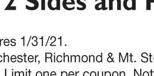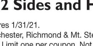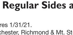 Basket Bites Salad Bowl New Rotisserie-style Chicken Bites 1007 Sylvia Drive Across from Lake Reba All trademarks owned or licensed by Am. D.Q. ©2021 509 LEIGHWAY DRIVE RICHMOND, KY 40475 *NO FEE on your first check. New customers only. Some restrictions apply. See store manager for details. (859) 625-1111 GET YOUR FIRST ADVANCE FEE FREE* FAST APPROVAL IT’S NOT A LOAN, IT’S AN ADVANCE! • FAST FUNDING • NO CREDIT CHECK • LOW FEES “I NEED MONEY TODAY!” CAR REPAIR HOLIDAY OVERSPENDING EMERGENCY CASH MEDICAL BILLS SPECIAL EVENT HOME REPAIR 292 Glades Park, Suite #7 Berea, KY 40403 859-358-5639 FoundationRealtyKY.com Rick Marcum, broker/owner Joey Marcum, agent/owner Residential and Commercial Real Estate Wishing you a wonderful 2021! Happy New Year!