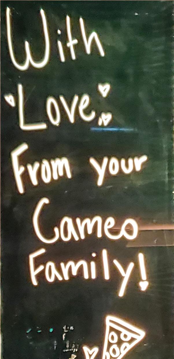 FAMILY PAK #1: 2 Lg. 2-topping pizzas & a small cheesybread $29.95 FAMILY PAK #2: Lg. 2-topping pizza, small Cheesybread, & breadsticks $19.99 SUPER PAK: 3 Lg. 1-topping pizzas & a medium Cheesybread $39.99 KIDS’ PAK: Lg. 1-topping pizza, cheese sticks, & Cinnabread $19.99 2 sm. 2-topping pizzas $14.95 Med. 2-topping pizza $9.99 Sub or Wrap 2 for $10.00 Lg. 2-topping pizza 6 boneless wings $17.95 Lg. 2-topping pizza $12.99 Med. specialty pizza $12.99 2 Lg. 2-topping pizzas $27.95 • • • SPECIALS • • • SANDUSKY 419-626-0187 HURON 419-433-0811 EXXON-MILAN 419-616-4444 WE’RE OPEN! We are doing the very best we can to ensure you have a SAFE family time at Cameo! OPEN for O.S.U. & Browns Games! Good Food Since 1936 ORDER ONLINE. IT’S TOO EASY! OPENING November 1 Friday nights only, for extra dining space RE-OPENING FOR PRIVATE PARTIES! Love your family... Love your friends. W hing everyone a healthy and pr perous New Year!