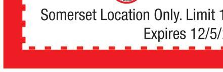 SOMERSET November 2020 Shop locally. Save locally. 4065 S. Highway 27, Somerset, KY 42501 buffalowingsandrings.com | 606-451-9464 Somerset location only. One coupon per table. Equal or lesser value. Dine-In or To-Go. Cannot be combined with other offers. Expires 11/30/20. 5 FREE WINGS WITH PURCHASE OF 5 WINGS $10.00 OFF ORDER OF $50 OR MORE ORDER OF $25 OR MORE $5.00 OFF Somerset location only. One coupon per table. Equal or lesser value. Dine-In or To-Go. Cannot be combined with other offers. Expires 11/30/20. Somerset location only. One coupon per table. Equal or lesser value. Dine-In or To-Go. Cannot be combined with other offers. Expires 11/30/20. Sun-Thurs 11-10 Fri & Sat 11-11 Download the Taco John's app for exclusive deals! 2700 SOUTH HIGHWAY 27 • SOMERSET, KY expires: 11.30.2020 Not valid with any other coupon, discount or offer. Limit one per customer. Only while supplies last. Valid only at the following Taco John’s location: 2700 South Highway 27 • Somerset, KY ©2020 Taco John’s International, Inc. All Rights Reserved. expires: 11.30.2020 Not valid with any other coupon, discount or offer. Limit one per customer. Only while supplies last. Valid only at the following Taco John’s location: 2700 South Highway 27 • Somerset, KY ©2020 Taco John’s International, Inc. All Rights Reserved. expires: 11.30.2020 Not valid with any other coupon, discount or offer. Limit one per customer. Only while supplies last. Valid only at the following Taco John’s location: 2700 South Highway 27 • Somerset, KY ©2020 Taco John’s International, Inc. All Rights Reserved. expires: 11.30.2020 Not valid with any other coupon, discount or offer. Limit one per customer. Only while supplies last. Valid only at the following Taco John’s location: 2700 South Highway 27 • Somerset, KY ©2020 Taco John’s International, Inc. All Rights Reserved. COUPON CODE 74560 COUPON CODE 75350 COUPON CODE 72751 10% OFF YOUR ENTIRE ORDER AT REGULAR PRICE FREE CRISPY BEEF TACO WITH PURCHASE OF A COMBO MEAL AT REGULAR PRICE $2 OFF SUPER POTATO OLÉS® AT REGULAR PRICE FREE HOT COFFEE WITH ANY PURCHASE COUPON CODE 89700 FAST, FRIENDLY, EXPERT SERVICE! PIT STOP PIT STOP Light 14 • 63 Jefferson Dr., Somerset, KY 606-451-0556 Hours: Mon.- Fri. 8-7 • Sat. 8-5 With TMS coupon only. Not valid with any other offer. $5 OFF Full Service Oil Change With TMS coupon only. Not valid with any other offer. $7 OFF Full Service Semi-Synthetic & High Mileage With TMS coupon only. Not valid with any other offer. $10 OFF Full Service Synthetic Over 30 Years of Experience! Locally Owned and Operated • Coolant Flushes • Tire Rotation • Transmission Flushes Battery Replacement • Differential Service • Bulb Replacement Local Owner/Manager Lori Manning To advertise, call 606.310.0088
