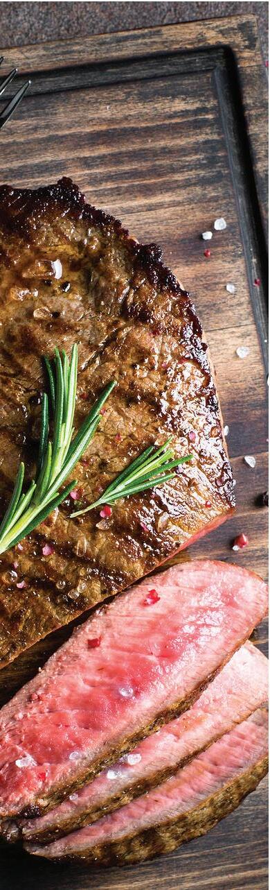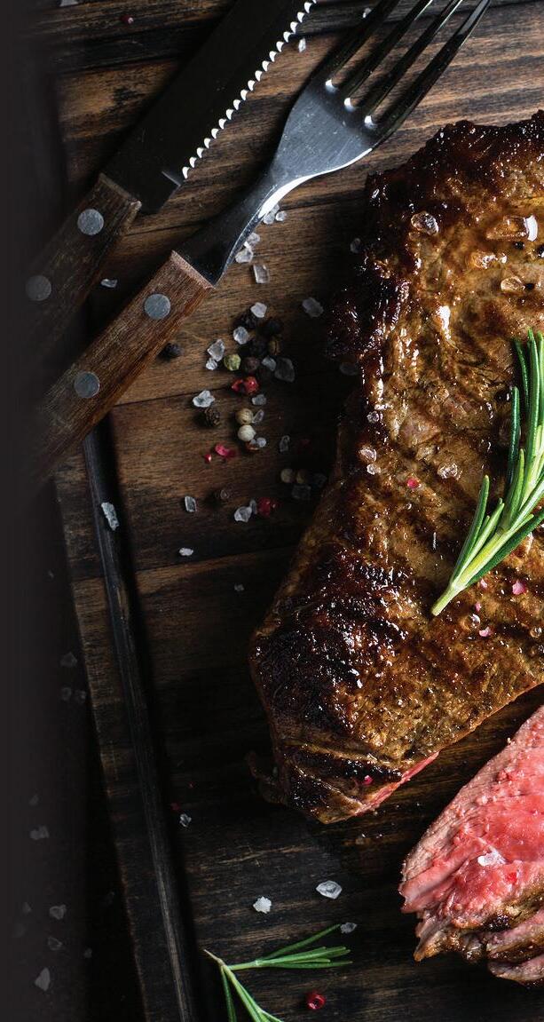 FILET MIGNON The “King of Steaks”! Lean and tender 7 oz. $26.99 10 oz. $29.99 RIBEYE Well-marbled and tender. 10 oz. $25.99 STEAK TIPS 6 oz. $15.99 CHOPPED STEAK Ground Angus beef. 7 oz. $11.99 STEAK ADDITIONS — THE PERFECT WAY TO CUSTOMIZE YOUR STEAK! Kentucky Bourbon Glaze $1.25 Sautéed Mushrooms $1.99 Sautéed Onions $1.99 Bleu Cheese Crumbles 99¢ 3 Grilled or Fried Shrimp $3.99