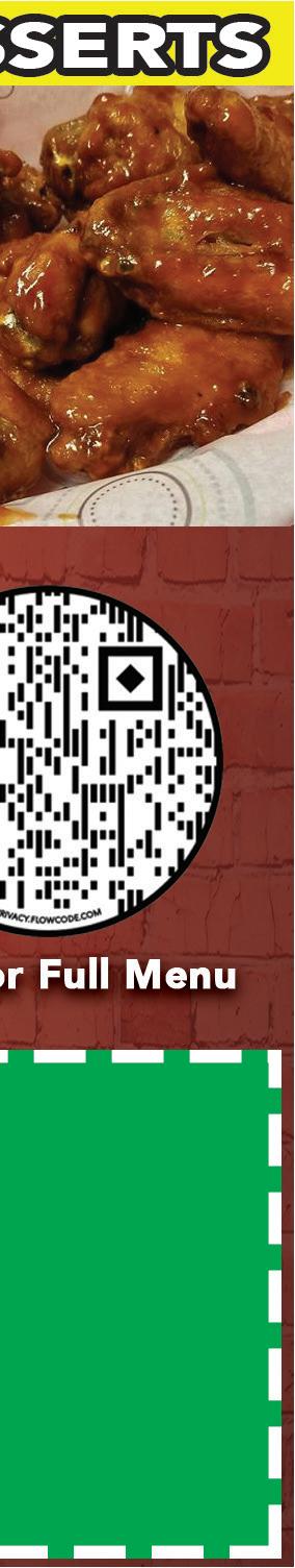 Thanks for your support in these difficult times 238-2028 • Mama Julianne’s ADDITIONAL ITEMS EXTRA . NOT VALID WITH OTHER OFFERS ONLY WITH COUPON • EXPIRES 9-10-20 PIZZA & WING DEAL HALF SHEET PIZZA WITH ONE TOPPING & 2 DOZEN WINGS $3499 SHEET DEAL SHEET PIZZA WITH ONE TOPPING (30-40 Slices) $2599 $500 OFF ANY ORDER $30 OR MORE AT REGULAR MENU PRICE 1 JUMBO 12-CUT PIZZA WITH TWO TOPPINGS $1499 Specialty Pizzas Not Included 238-2028 • Mama Julianne’s ADDITIONAL ITEMS EXTRA NOT VALID WITH OTHER OFFERS ONLY WITH COUPON. EXPIRES 9-10-20 Limit 2 238-2028 • Mama Julianne’s ADDITIONAL ITEMS EXTRA NOT VALID WITH OTHER OFFERS ONLY WITH COUPON. EXPIRES 9-10-20 1 MEDIUM 8-CUT PIZZA WITH TWO TOPPINGS $999 Limit 2 238-2028 • Mama Julianne’s NOT VALID WITH OTHER OFFERS ONLY WITH COUPON. EXPIRES 9-10-20 12 PIECE CHICKEN WITH 16 JOJO’S $1799 ADD A PINT OF SLAW $2.00 Specialty Pizzas Not Included 238-2028 • Mama Julianne’s ADDITIONAL ITEMS EXTRA NOT VALID WITH OTHER OFFERS ONLY WITH COUPON. EXPIRES 9-10-20 Limit 2 SHEET PIZZA WITH ONE TOPPING, 24 PC BROASTED CHICKEN, 32 JOJO’S & A 2-LITER OF POP 238-2028 • Mama Julianne’s ADDITIONAL ITEMS EXTRA • NOT VALID WITH OTHER OFFERS ONLY WITH COUPON. EXPIRES 9-10-20 SHEET PIZZA WITH ONE TOPPING, 32 PC BROASTED CHICKEN, 1/2 TRAY OF SALAD & 1/2 TRAY OF PASTA $6599 $10499 Serves 12-15 238-2028 • Mama Julianne’s ADDITIONAL ITEMS EXTRA • NOT VALID WITH OTHER OFFERS ONLY WITH COUPON. EXPIRES 9-10-20 238-2028 • Mama Julianne’s NOT VALID WITH OTHER OFFERS ONLY WITH COUPON. EXPIRES 9-10-20