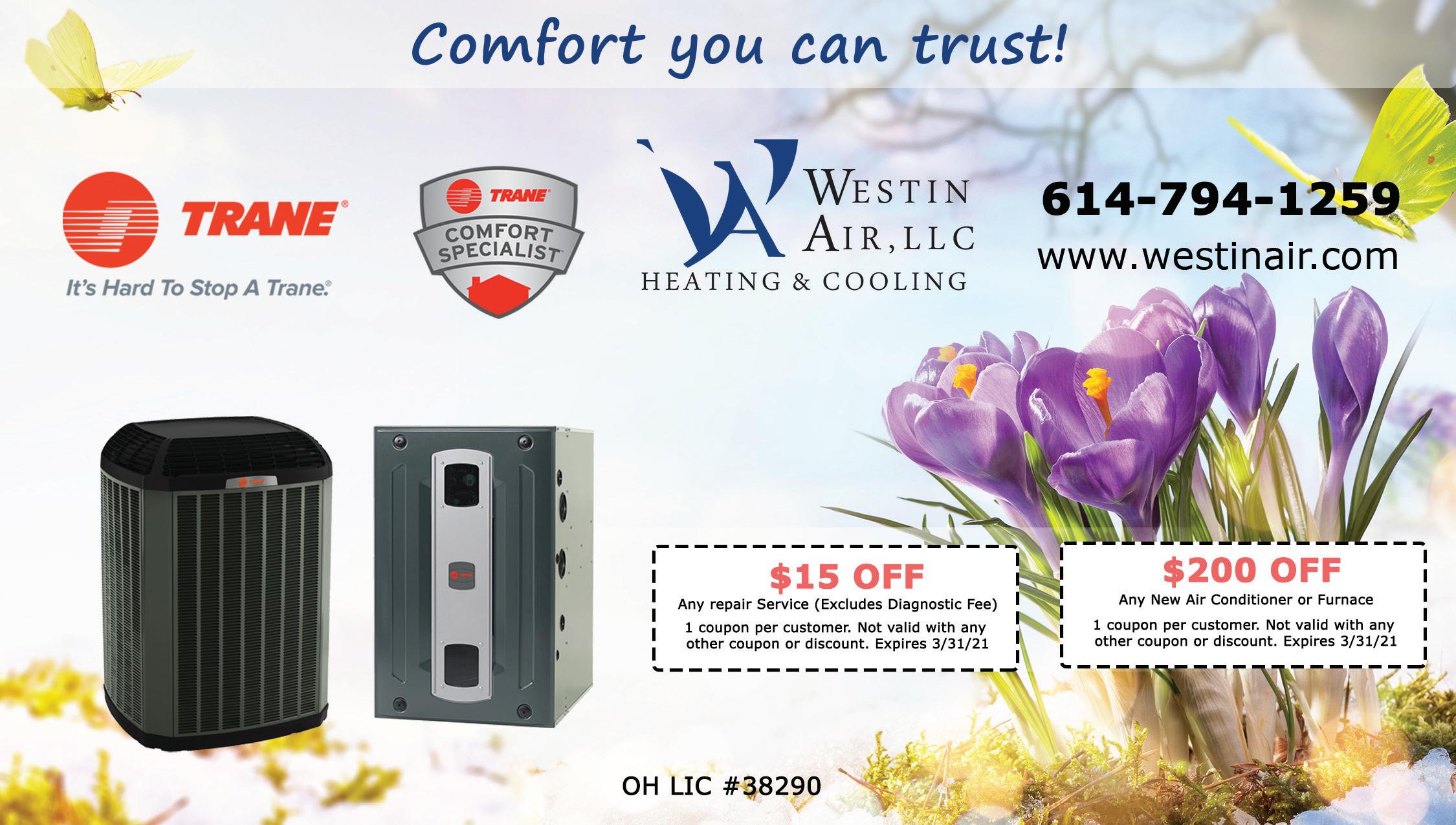 CERTIFIED 5.0 Rated BUSINESS lewiscenterpowellheatingandair.com 614 - 957 - 7733 AC SPECIAL EARLY BIRD 2,999 HIGH-EFFICIENCY GAS FURNACE HIGH-EFFICIENCY FURNACE & AC FURNACE & AC with any completed paid repair must schedule before March 15 2,499 5,499 6,499 96% SUPER HIGH-EFFICIENCY Must mention coupon with scheduling. Not valid with other o ers or discounts. Some restrictions may apply. Expires 3/30/21. 13 SEER, up to 2 Ton. Permits not included. Code update not included. Must mention coupon with scheduling. Not valid with other o ers or discounts. Must have existing air conditioner. Some restrictions may apply. Expires 3/30/21. 80% E ciency, up to 60k BTU. Must mention coupon with scheduling. Not valid with other o ers or discounts. Some restrictions may apply. Call for any questions or concerns. Expires 3/30/21. 80% E ciency, up to 60k BTU. 13 SEER, up to 2 Ton. Permits not included. Code update not included. Not valid with other o ers or discounts. Must have existing air conditioner. Some restrictions may apply. Expires 3/30/21. 96% E ciency, up to 60k BTU. 13 SEER, up to 2 Ton. Permits not included. Code update not included. Not valid with other o ers or discounts. Must have existing air conditioner. Some restrictions may apply. Expires 3/30/21 Must mention coupon with scheduling. Not valid with other o ers or discounts. Some restrictions may apply. Expires 3/30/21. Must mention coupon with scheduling. Not valid with other o ers or discounts. Some restrictions may apply. Expires 3/15/21. Must mention coupon with scheduling. Not valid with other o ers or discounts. Some restrictions may apply. Expires 3/30/21.