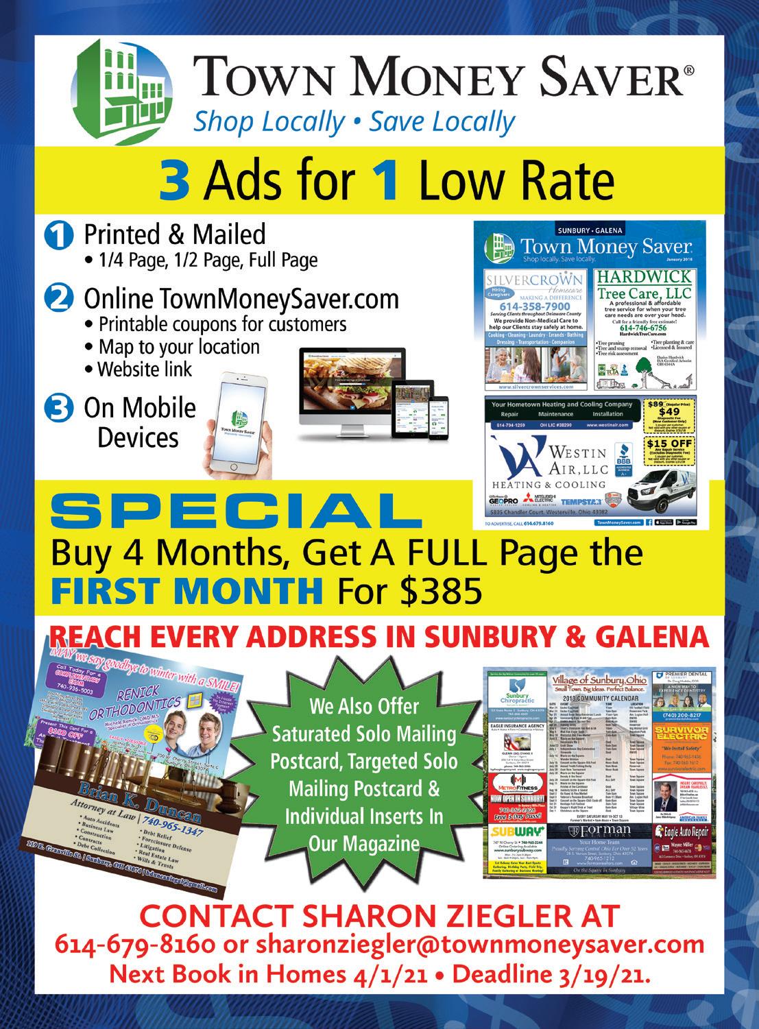 To advertise, call 614-679-8160 Shop locally. Shop safely. Support LOCAL businesses! March 2021 SUNBURY • GALENA Not valid with any other offer. Expires 3/25/21.