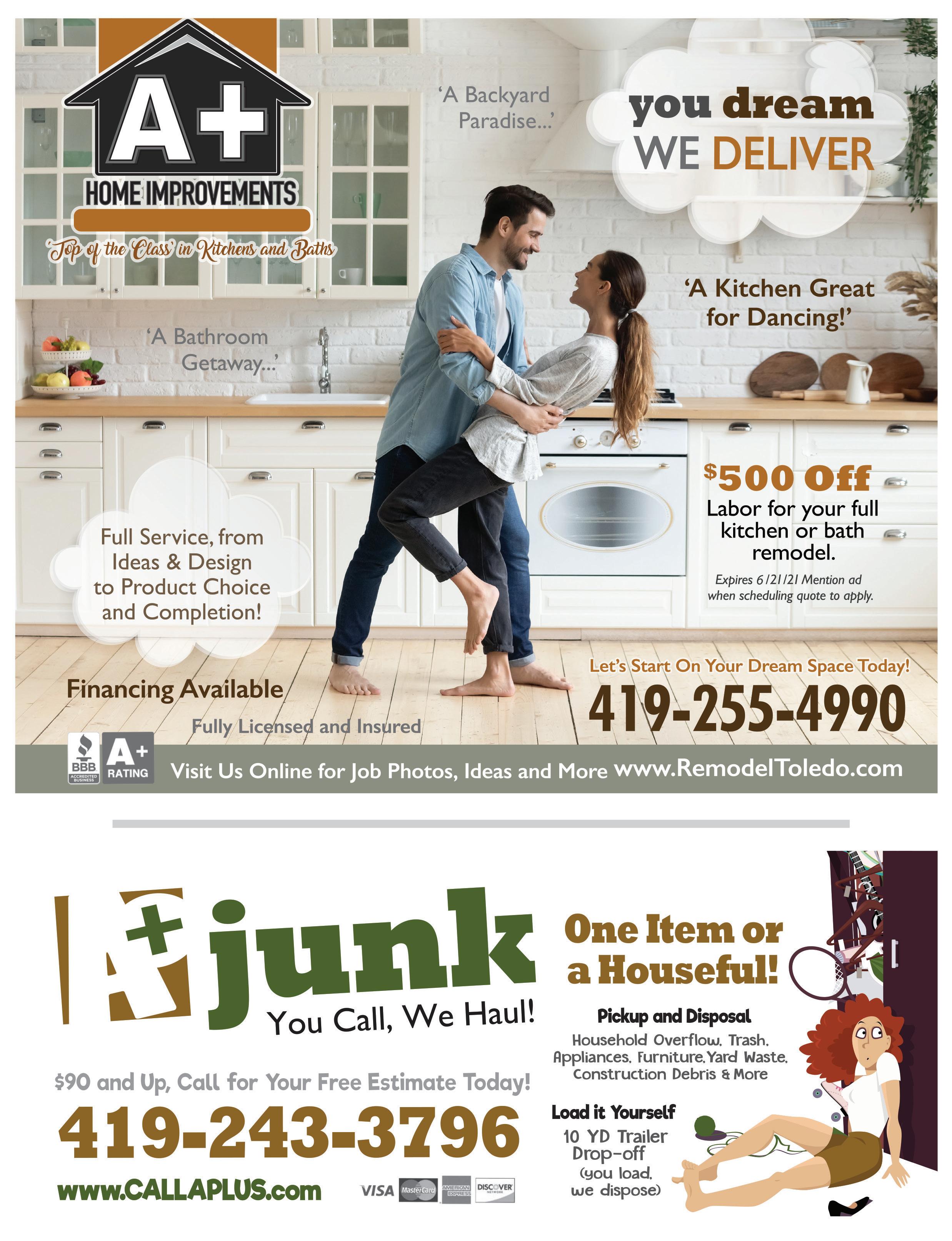 6742 Sylvania Ave • Sylvania • 419-882-3465 OPEN DAILY 7am-7:30pm Sat & Sun 7am-3pm Classic Cafe Do you miss Mom’s Home Cooking? • Breakfast Served Anytime • Daily Specials • Soups, Salads, Sandwiches • Homemade Pies • & Much More! Any $12 Purchase Please present coupon to server upon ordering. Dine in only. Not valid with any other offer. No senior discount with coupon. Exp 4/30/21 $2 OFF Gift Certificates AVAILABLE Mothers Day COMMERCIAL • RESIDENTIAL SERVING NORTHWEST OHIO www.BudgetDumpstersToledo.com OPEN 8AM-5PM 419-690-9896 B udgetDumpstersToledo LOCALLY OWNED 3307 North Holland-Sylvania, Suite16, Tol Certified Service “Doing Business with Character” Service Hours MON-FRI 7:30AM-6PM SAT 8AM-1PM Fast & Easy Scheduling Online 24/7: BallasBuickGMC.com We Service All Makes & Models Oil Change $3995 FULL SYNTHETIC OIL! FREE CAR WASH/TIRE ROTATION Includes Up To 5 Quarts of Dexus Synthetic Oil. Top Off All Fluids. All Makes & Models, Some Models May Have Price Variances. Engine Coolant System Flush & Inspection Must present coupon when order is written. Cannot be combined with any other specials. Plus tax & shop supplies. One per customer. Expires 4/30/21 Includes New A/C Delco Coolant. Inspect Radiator and Heater Hoses. Thermostat, Hoses and Gaskets. On most Makes and Models. One coupon per person. Expires 4/30/21 $ 189 95 $ 99 50 Pothole Special Alignment Includes Front End Alignment And Tire Rotation. Most Vehicles. Some Restrictions Apply. With Coupon. 1 Coupon Per Service. Expires 4/30/21 Brake Pad & Rotor Replacement $ 25 OFF Must present coupon when order is written. Cannot be combined with any other specials. GM Vehicles only. Plus tax & shop supplies. One per customer. Expires 4/30/21 5715 W. Central, Toledo 419-535-1000 Get a tune-up now! BF Goodrich • Bridgestone • Continental Dunlop • Firestone • General • Goodyear Hankook • Kelly • Michelin • Pirelli • Uniroyal Tire PRICE MATCH Guarantee! Find a better price within 30 days of purchase & we will refund the difference! Eligible Brands: Rebates Up To $100 OFF Purchase of 4 Tires Call today for a tire quote! We match a competitor pricing Let’s Get Ready For SPRING CAR Care SPECIALS with these