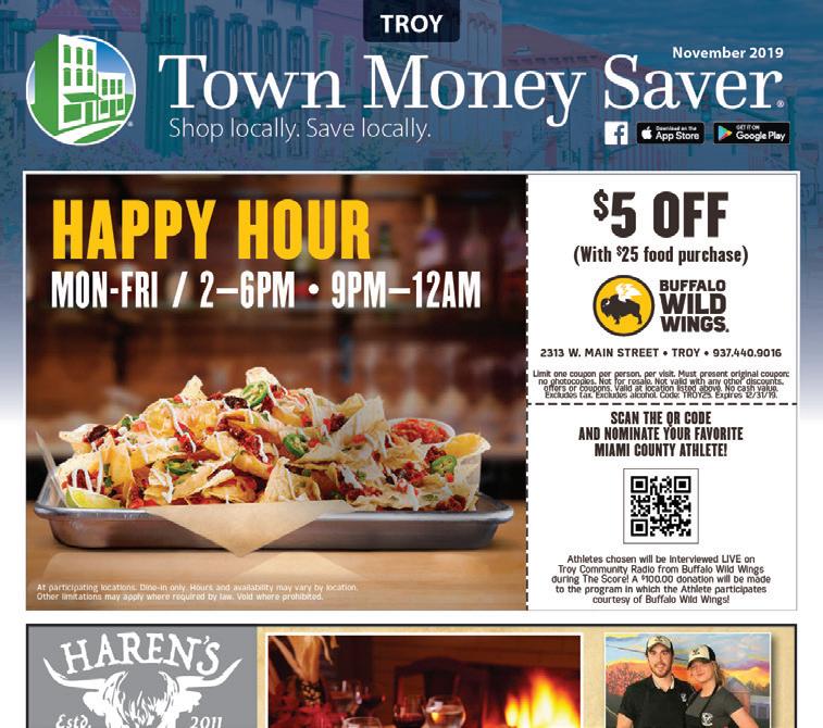 TROY Sept/Oct 2020 Shop locally. Shop safely. Support LOCAL businesses! BUFFALO WEDGE SALAD TM & ©2020 Buffalo Wild Wings, Inc. BWW2020-0213457 $5 OFF WITH $25 FOOD PURCHASE 2313 WEST MAIN STREET TROY • 937.440.9016 Limit one coupon per person, per visit. Must present original coupon; no photocopies. Not for resale. Not valid with any other discounts, offers or coupons. Valid at location listed above. No cash value. Excludes tax. Excludes alcohol. Expires 10/31/20. CHECK OUT OUR NEW MENU COMING IN SEPTEMBER All together now. Unity National Bank is taking on our family name. parknationalbank.com