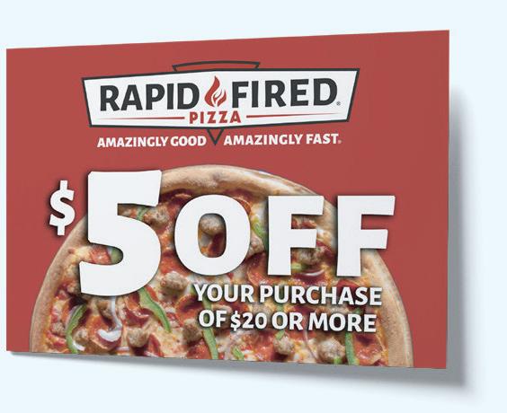 STOP SETTLING FOR LESS UPGRADE TO PREMIUM PIZZA OPEN FOR DINE-IN, CARRYOUT & DELIVERY PIZZA PASTA CALZONES SALAD DESSERTS BEER & WINE @rapi df i r e dpizz a FAMILY DEAL $5 OFF $20 $5 SINGLE-TOPPING Purchase one single-topping 9” or 11” pizza for only $5. Not valid with any other special or discount Limit 1 per visit. Expires 12/31/20. Limit 1 per visit. Expires 12/31/20. Limit 1 per visit. Expires 12/31/20. Limit 1 per visit. Expires 12/31/20. Not valid with any other special or discount Not valid with any other special or discount CODE: NO CODE NEEDED CODE: NO CODE NEEDED CODE: NO CODE NEEDED CODE: NO CODE NEEDED Not valid with any other special or discount Receive $5 off your next purchase of $20 or more. Get 2 large 2 topping pizzas, an order of Cheezy Bread, and a dessert pizza for only $24.95 BOGO Buy one regular priced pizza, pasta or calzone, and get another of equal or lesser value for free! Englewood 1080 S Main St GIVE THE GIF T OF PREMIUM PIZZA! BUY A $25 GIF T CARD, AND GET A $5 OFF CARD