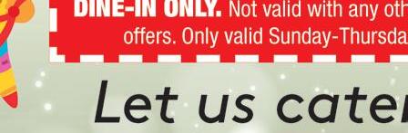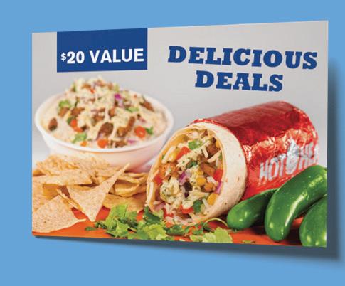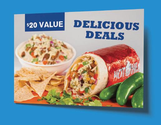 OPEN FOR DINE-IN, CURBSIDE, CARRYOUT & DELIVERY BURRITOS • BOWLS • TACOS • NACHOS QUESADILLAS BUY A $20 GIFT CARD FOR THEM, AND GET $20 WORTH OF COUPONS FOR YOURSELF! A GIFT FOR THEM, & A GIFT FOR YOU! HOTHEADBURRITOS.COM/LOCATIONS ORDER ONLINE • JOIN OUR REWARDS @HOTHEADBURRITOS MSP BURRITO & BOWL BUNDLE YOUR CHOICE OF 4 BURRITOS OR BOWLS, LARGE CHIPS AND YOUR CHOICE OF A REGULAR SIZED SALSA FOR $29.95 MSP Excludes double meat, guac and/or queso. Not Valid with any other offer. In store only. One per coupon. Expires 12/31/20. MSP FREE QUESO FREE MEDIUM QUESO WHEN YOU ORDER A BAG OF CHIPS MSP Not Valid with any other offer. In store only. One per coupon. Expires 12/31/20. MSP TACO PACKS TACO PACKS AVAILABLE IN PACKS OF 6 OR 10 STARTING AT ONLY $11.95* MSP Additional charge for chicken, steak, pork, fish, or barbacoa. No coupon necessary. MSP $5 OFF $25 RECEIVE $5 OFF YOUR ORDER OF $25 OR MORE MSP Not Valid with any other offer. In store only. One per coupon. Expires 12/31/20. MSP FREE DRINK RECEIVE A FREE DRINK WITH A REGULAR SIZE BOWL OR BURRITO MSP Not Valid with any other offer. In store only. One per coupon. Expires 12/31/20. MSP 2 FOR $12.99 RECEIVE 2 REGULAR SIZED BURRITOS OR BOWLS FOR ONLY $12.99 MSP Not valid with any other offer. In store only. One per coupon. Expires 12/31/20. EATON 1629 N BARRON ST 937-456-5684 SIDNEY 2028 W MICHIGAN ST 937-658-6040 TIPP CITY 968 W MAIN ST 937-667-0030 TROY 1287 S DORSET RD 937-552-7741 VANDALIA 116 E NATIONAL RD 937-387-6663