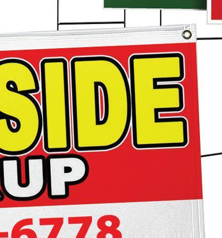 Wishing you the and a new year It’s never been more important to let customers know how you’re doing business. Our new products will help you post messages to your customers inside and outside your store. Keep customers safe and up to date. Local advertising made easy. Contact Bill. 937.520.7979 billclark@townmoneysaver.com YARD SIGNS – 24"W x 18"H Two-sided • Full-color custom design 4mm Coroplast • H stakes included OUTDOOR BANNERS – Up to 8' x 8’ Full-color custom design • 13oz Scrim Vinyl Hemmed with grommets every two feet FLOOR DECALS – 12" Circle 4mil Vinyl • Removable adhesive backing APPAREL Includes Embroidery logo Product Details Standard TMS design S hopLocally ShopSafel y STAY6FEETAPART Starting at $16.99 Starting at $4.50 per sq.ft. Starting at $10.95 w/Laminate Starting at $29.99