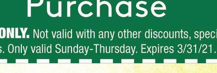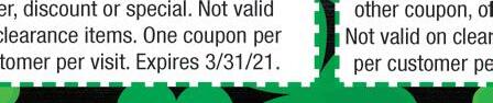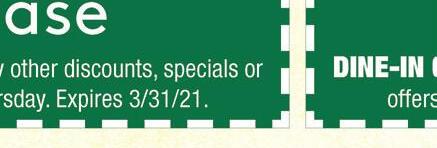 VANDALIA • CLAYTON • ENGLEWOOD Published By Town Money Saver, Inc. Corporate Office • PO Box 356 • Lucas, OH 44843 © 2021 TMS Franchising, Inc. All rights reserved. For advertising information, call Bill 937-520-7979 NEXT ISSUE IN HOMES: April 1, 2021 ADVERTISING DEADLINE: March 17, 2021 POSTAL CUSTOMER PRSRT STD ECRWSS U.S. POSTAGE PAID Town Money Saver, Inc. townmoneysaver.com EERF SPIHC DNA MUIDEM KNIRD htiwehtesahcrupabus ©0202esuoheriF.sbuSsihTreffodilavhtiwnopuoc,notyaD oihOaera.stnaruatsersecirPdnanoitapicitrapyam,yravees-ser tnaruatrof.sliatedtimiLenorep,remotsucrep.tisivtoNdilav htiwynarehto.sreffosnoitutitsbuSsnoitiddayamtluser-da lanoitid.segrahc .pxE 0202/13/21 BUS$OBMOC EERF TRESSED htiwesahcrupa01$ ro()regralesuoheriF sbuStfigdrac ©0202esuoheriF.sbuSsihTreffodilavhtiwnopuoc,notyaD oihOaera.stnaruatsersecirPdnanoitapicitrapyam,yravees-ser tnaruatrof.sliatedtimiLenorep,remotsucrep.tisivtoNdilav htiwynarehto.sreffosnoitutitsbuSsnoitiddayamtluser-da lanoitid.segrahc .pxE 0202/13/21TFIG$TRESSED Tastes Even Better Than It Looks. What more could you want? Chips, drink and a cookie? No problem. We sell those, too. Exp. 3/31/2021. Exp. 3/31/2021.