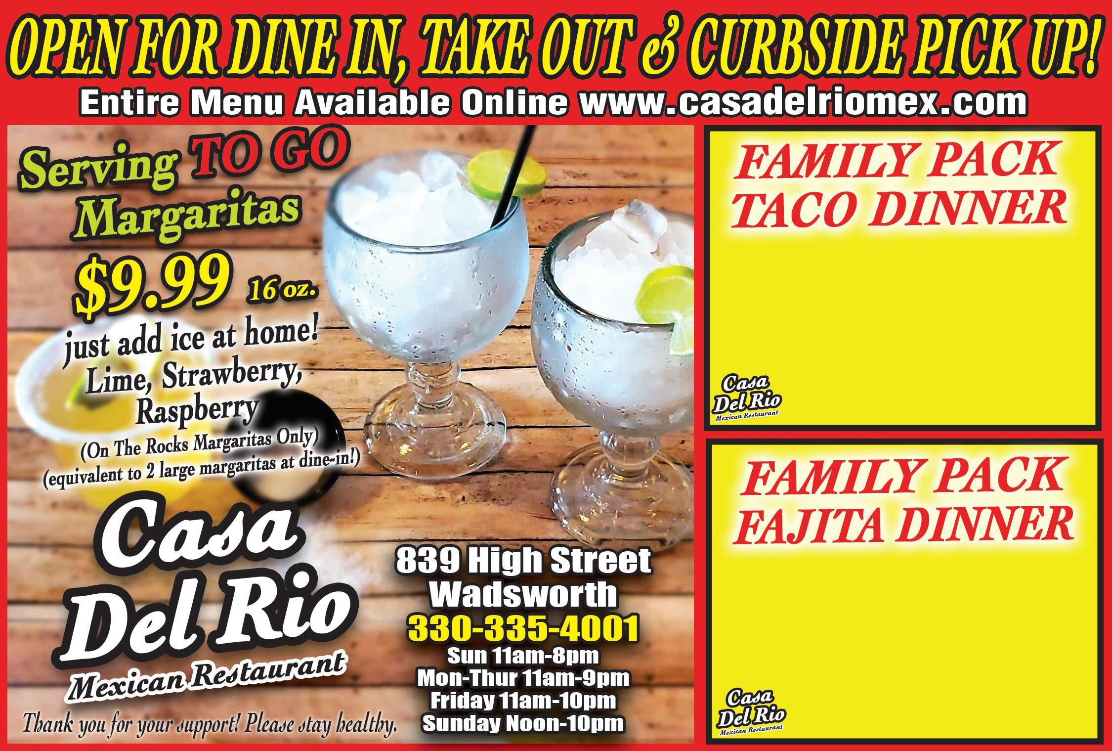 COMPLETE AUTOMOTIVE & TRANSMISSION SERVICE 330-334-4227 349 Main Street • Wadsworth (1/2 a mile south of the square) Veteran & Senior Discount HERE FOR ALL YOUR AUTOMOTIVE & TRANSMISSION NEEDS Most cars. Valid Only With Coupon. Not Valid With Any Other Offers. Expires 1/28/21 COOLANT SYSTEM FLUSH $5995 Valid Only With Coupon. Not Valid With Any Other Offers. Expires 1/28/21 FREE TRANSMISSION DIAGNOSIS PLUS 10% OFF ANY TRANSMISSION REPAIR (UP TO $100) Ask Us About Our Unlimited Mile Warranty WE BUY CARS! Doing Business the “Old Fashion Way” HONEST! R/T AUTOMOTIVE & TRANSMISSION BRAKE SPECIAL CERAMIC PADS & NEW ROTORS $18995 Most cars. Valid Only With Coupon. Not Valid With Any Other Offers. Expires 1/28/21 Is Your Car Starting? FREE BATTERY CHECK! Includes 10 Tacos (Hard or Soft) Your Choice of • Ground Beef • Shredded or Grilled Chicken Includes Chips & Salsa, Rice & Beans PLUS FREE Cheese Dip $2499 (Feeds 4) Chicken $29.99 Steak $39.99 Shrimp $39.99 Includes Rice & Beans, Tortilla, Side of Lettuce & Sour Cream, 2 Large Chips & Large Salsa