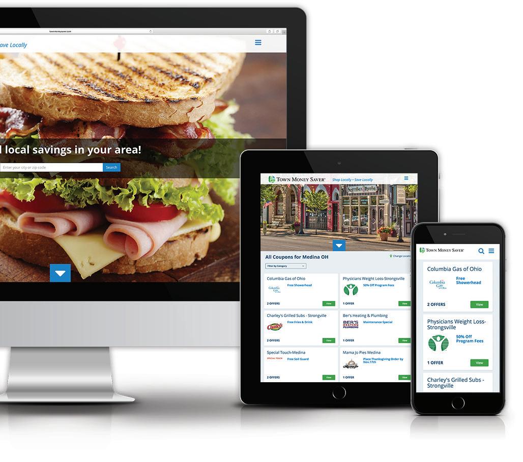 ® www.greatoaksstorage.com Great Oaks Shopping Plaza • 209 Great Oaks Trail A short walk from Buehler’s Wadsworth • Conveniently located just off of I-76 Call (330) 334-0545 or (216) 696-5442 STORE YOUR STUFF! HAVE A CLUTTER-FREE NEW YEAR! CLEAN & SECURE! W 24 Hr. Video Surveillance Cameras W All Indoor & Climate Controlled W Personal Entry Codes (Access 7am-7pm) W Month-to-Month Rental W Long-Term Leasing Discounts RESIDENTIAL • COMMERCIAL • STUDENTS WELCOME! $25.00 OFF FIRST MONTH’S RENT PARTIAL MONTH EXCLUDED. WITH THIS COUPON. NOT VALID WITH OTHER OFFERS. EXPIRES 1-28-21 WINTER SEASON SPECIALS! Same great savings. Brand new website. Check it out now at townmoneysaver.com Local business owners have been counting on Town Money Saver to help grow their businesses since 1992. We are proud to be your hometown coupon magazine.