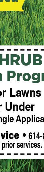 FIND US ON THE TMS APP We’ll Take Care of your Lawn Just like It’s Our OWN Call (614) 808-4446 www.cardinallawns.com We also offer these additional services: • Insect & Grub Control • Pest & Mosquito Control • Tree & Shrub Care • Core Aeration • Seeding, Lawn Renovation, Slice Seeding • Mole Control NEW CUSTOMER SPECIAL $25 OFF FREE Any Program You Choose + 2 Free Soil Applications Grub Treatment with Pre-Pay Full Program Up to 15,000 sq. ft. New customers only. Not valid with any other offers. Expires 4/30/21. For your convenience, our services are continual. New customers only. Not valid with any other offers. Expires 4/30/21. For your convenience, our services are continual. “Technician is very considerate” Helen B., New Albany, OH “Cardinal Lawns did a fabulous job this year. It’s only our second year but the grass looks much better than it ever has in the 12 years we lived here. Can’t wait til you return” Mike W., Gahanna, OH