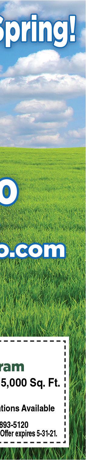 614-412-7663 Concrete Patio: avg 20’x20’ for $3,999 Services Include: Stamped Patios • Colored Concrete • Exposed Aggregate Demolition and More! www.gencoconcrete.com • info@gencoconcrete.com Spring Specials Replace Driveway: avg 25’x16’ for $3,999 licensed bonded and insured FREE 24 Hour Estimates MAX OF $100. Not valid on aeration services. Not valid with any other offers. With coupon only. Expires 6/30/21. 10% OFF ANY SERVICE