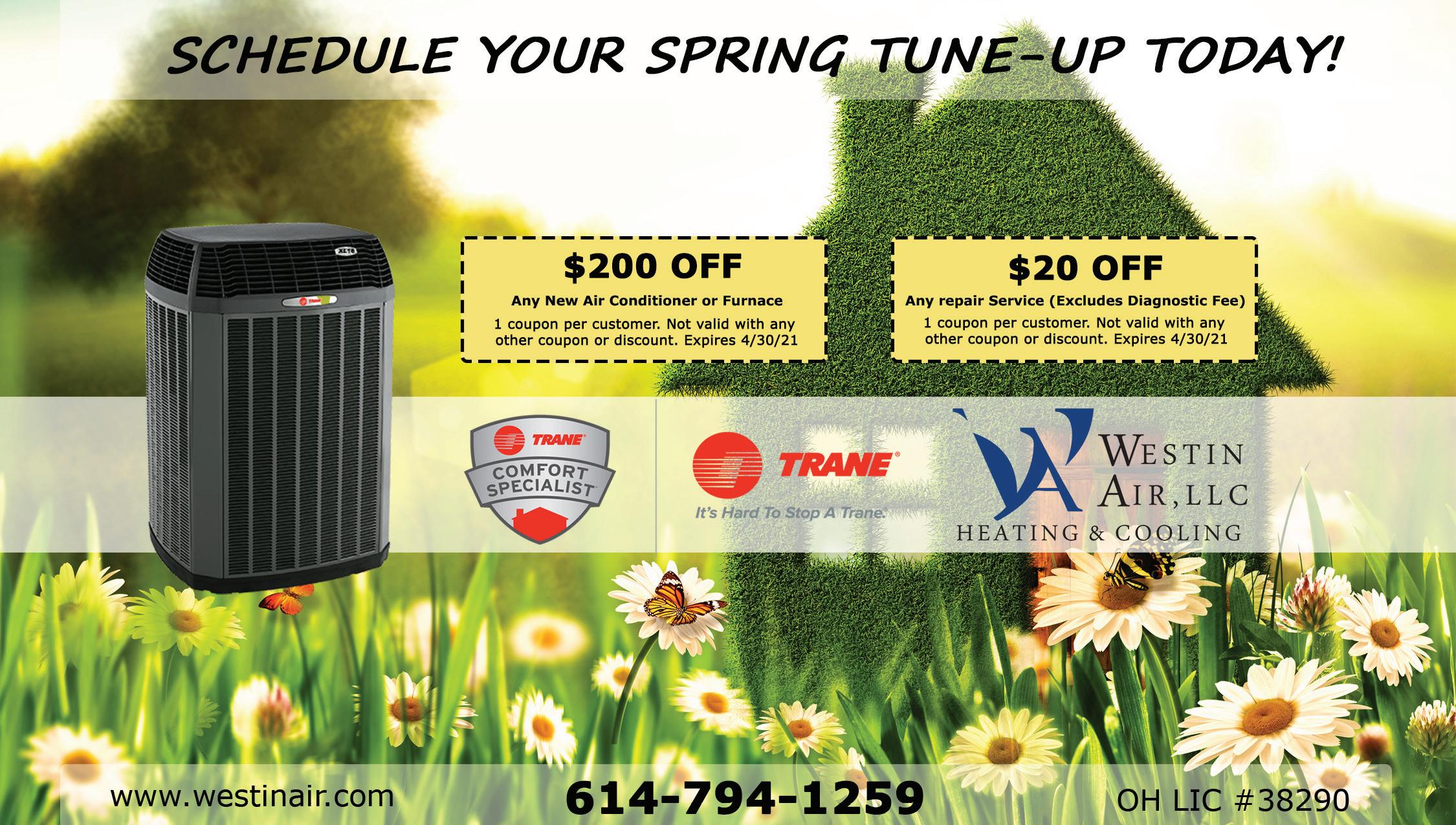 CERTIFIED 5.0 Rated BUSINESS website: www.westervilleair.com 614 - 957 - 7785 AC SPECIAL EARLY BIRD 16 SEER 3,499 EARLY BIRD 13 SEER AC SPECIAL HIGH-EFFICIENCY FURNACE & AC FURNACE & AC with any completed paid repair must schedule before April 14 2,899 5,499 6,499 96% SUPER HIGH-EFFICIENCY Must mention coupon with scheduling. Not valid with other o ers or discounts. Some restrictions may apply. Expires 4/27/21 80% E ciency, up to 60k BTU. 13 SEER, up to 2 Ton. Permits not included. Code update not included. Not valid with other o ers or discounts. Must have existing air conditioner. Some restrictions may apply. Expires 4/27/21 96% E ciency, up to 60k BTU. 13 SEER, up to 2 Ton. Permits not included. Code update not included. Not valid with other o ers or discounts. Must have existing air conditioner. Some restrictions may apply. Expires 4/27/21 Must mention coupon with scheduling. Not valid with other o ers or discounts. Some restrictions may apply. Expires 4/27/21 Must mention coupon with scheduling. Not valid with other o ers or discounts. Some restrictions may apply. Expires 4/14/21. Must mention coupon with scheduling. Not valid with other o ers or discounts. Some restrictions may apply. Expires 4/14/21. IWAVE-R AIR CLEANER (Includes $300 Columbia Gas Rebate) TMC-421-2 TMC-421-1 TMC-421-3 TMC-421-4 TMC-421-7 TMC-421-8 TMC-421-5 TMC-421-6 13 SEER, up to 2 Ton. Permits not included. Code update not included. Must mention coupon with scheduling. Not valid with other o ers or discounts. Must have existing air conditioner. Some restrictions may apply. Expires 4/27/21. 16 SEER, up to 2 Ton. Permits not included. Code update not included. Must mention coupon with scheduling. Not valid with other o ers or discounts. Must have existing air conditioner. Some restrictions may apply. Expires 4/27/21. must schedule before April 14