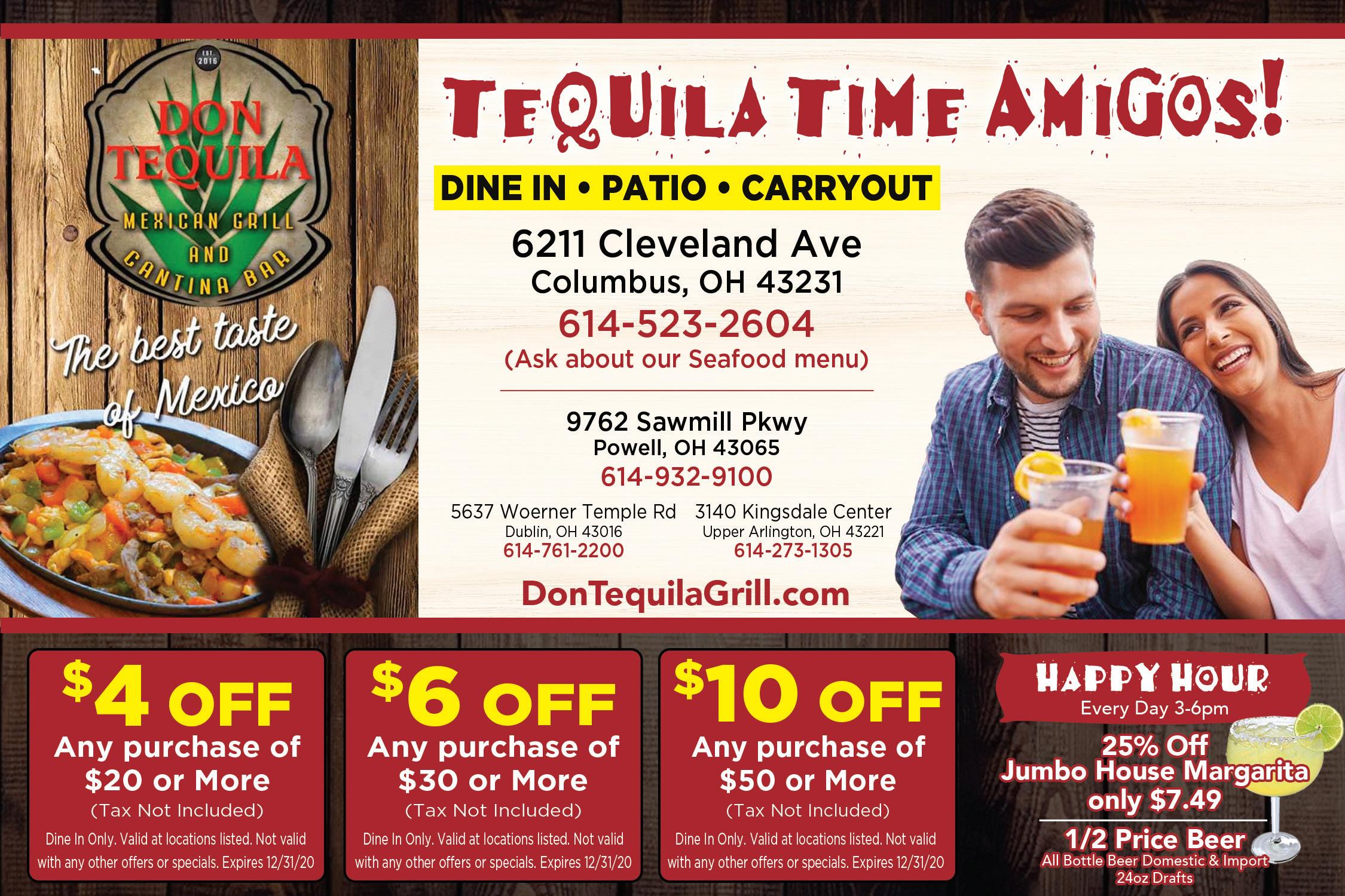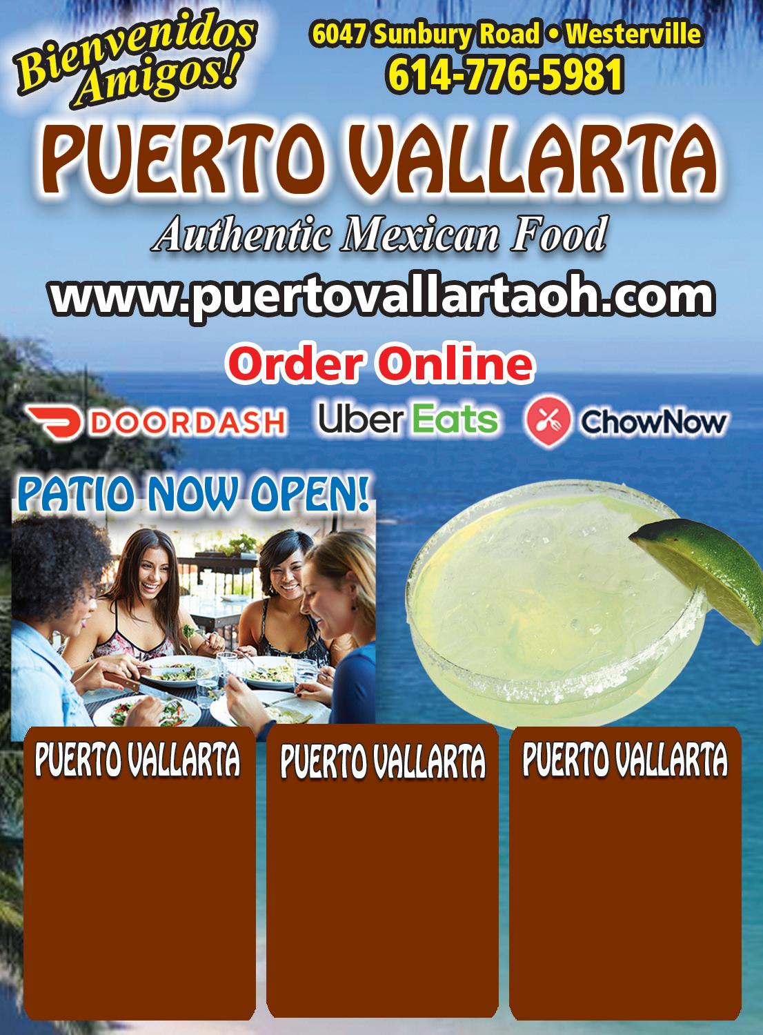 $4 OFF Any Order of $20 or More Puerto Vallarta • PataskalaNewark-Heath-StubenvilleWesterville. Not valid with any other offers. Valid with coupon. Expires 12/3/20. $5 OFF Any Order of $30 or More Puerto Vallarta • PataskalaNewark-Heath-StubenvilleWesterville. Not valid with any other offers. Valid with coupon. Expires 12/3/20. $10 OFF Any Order of $50 or More Puerto Vallarta • PataskalaNewark-Heath-StubenvilleWesterville. Not valid with any other offers. Valid with coupon. Expires 12/3/20. FULL SERVICE BAR BEER, LIQUOR & MIXED DRINKS AVAILABLE 7 DAYS A WEEK HAPPY HOUR DAILY 4PM-8PM!